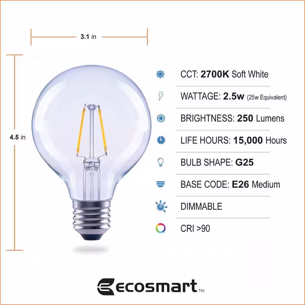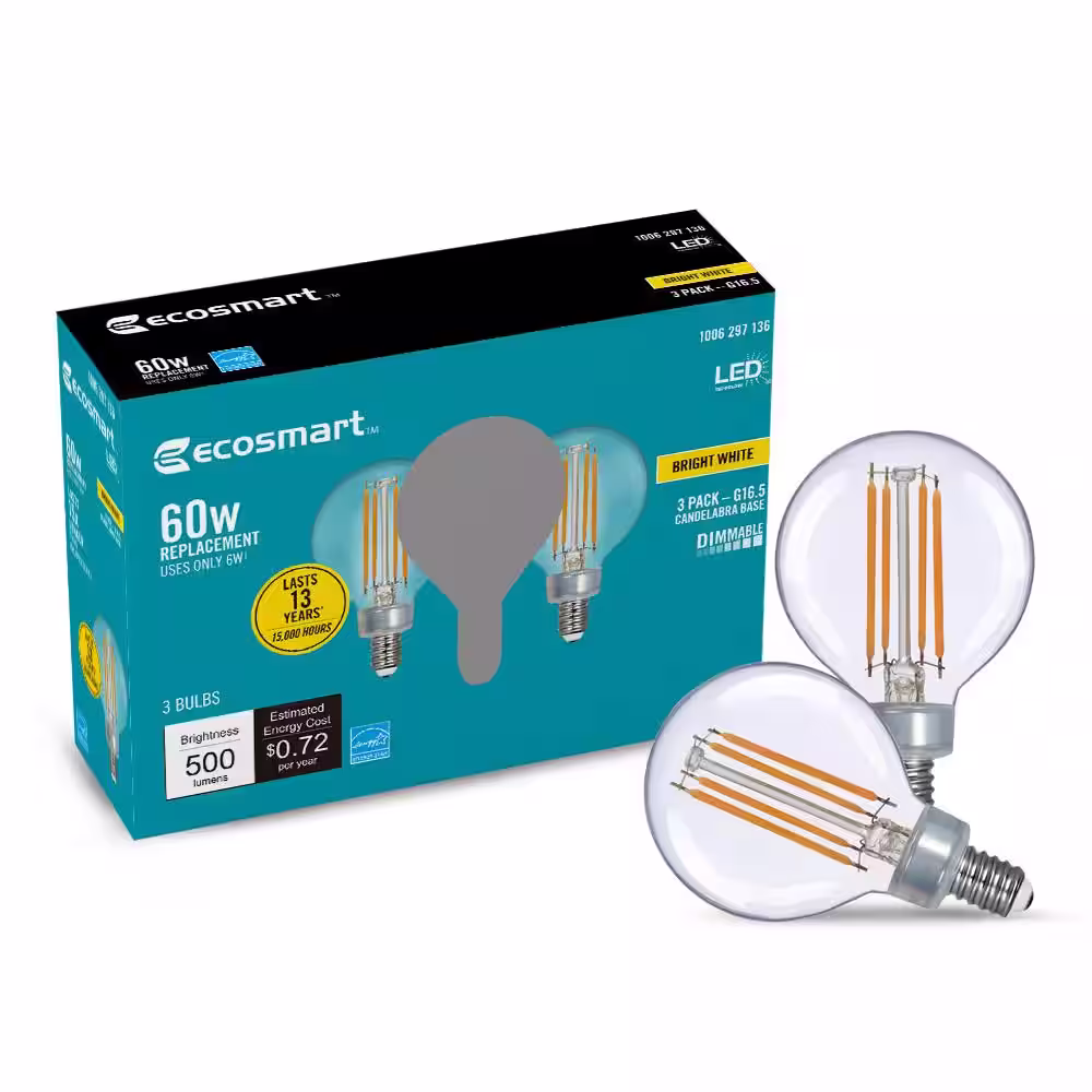 EcoSmart 60-Watt Equivalent G16.5 Dimmable ENERGY STAR CEC Filament LED Light Bulb Bright White (3-Pack)
