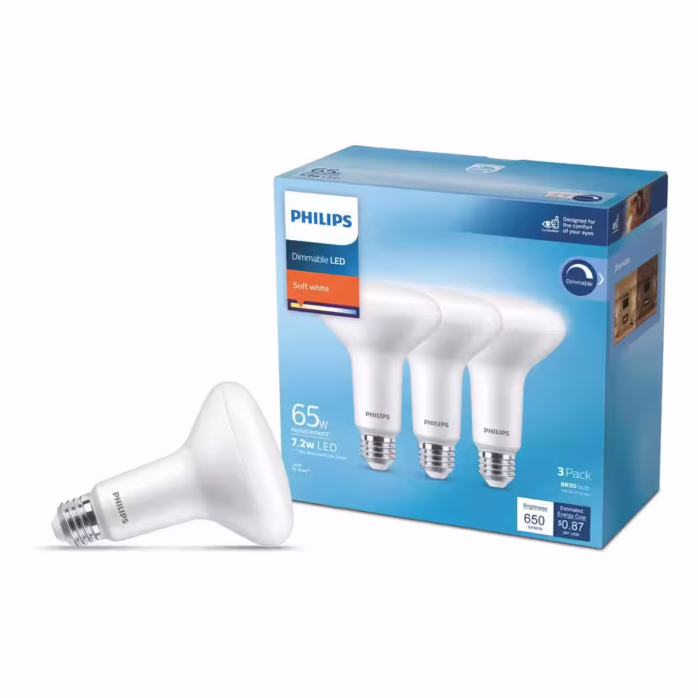 Philips 65-Watt Equivalent BR30 Dimmable E26 LED Light Bulb Soft White 2700K (3-Pack)