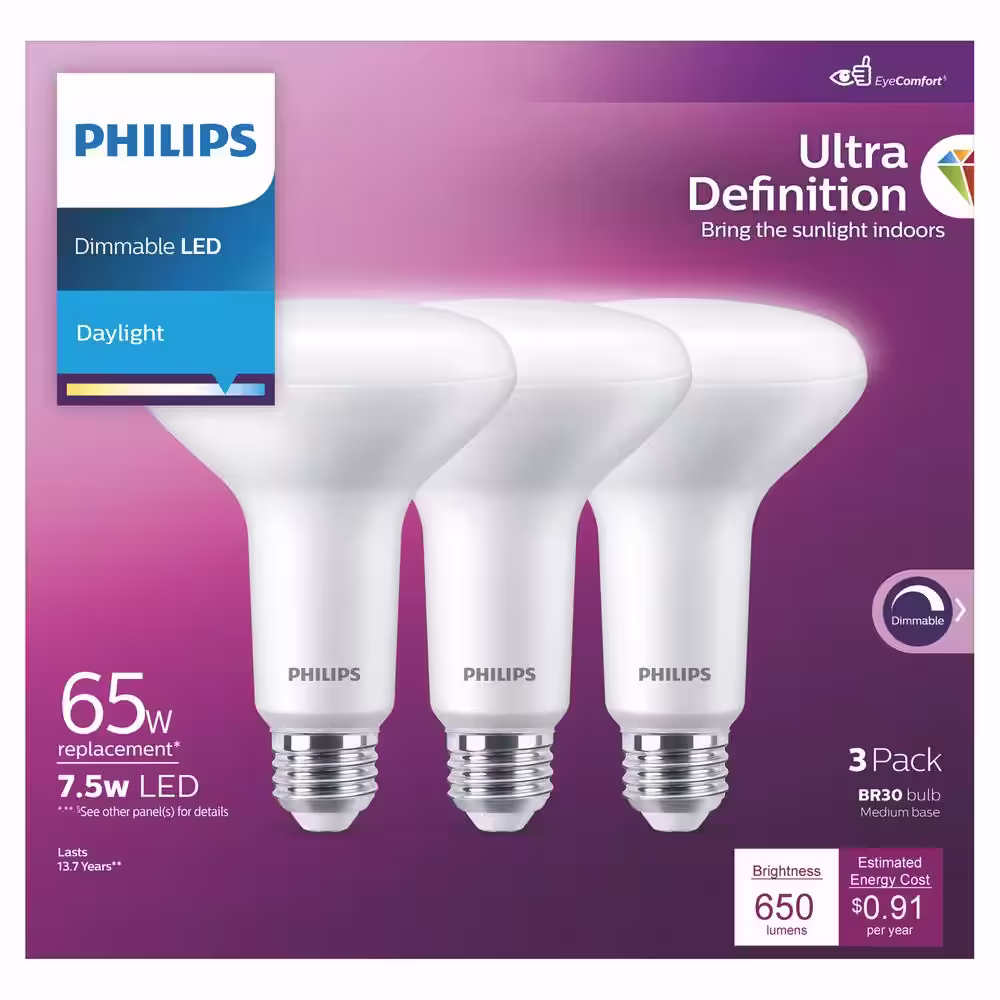 Philips 65-Watt Equivalent BR30 Ultra-Definition Dimmable E26 LED Light Bulb Daylight 5000K (3-Pack)