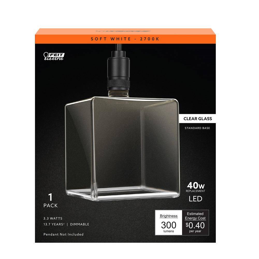 Feit Electric 40-Watt Equivalent Cube Dimmable Oversized Clear Glass E26 LED Light Bulb Soft White 2700K