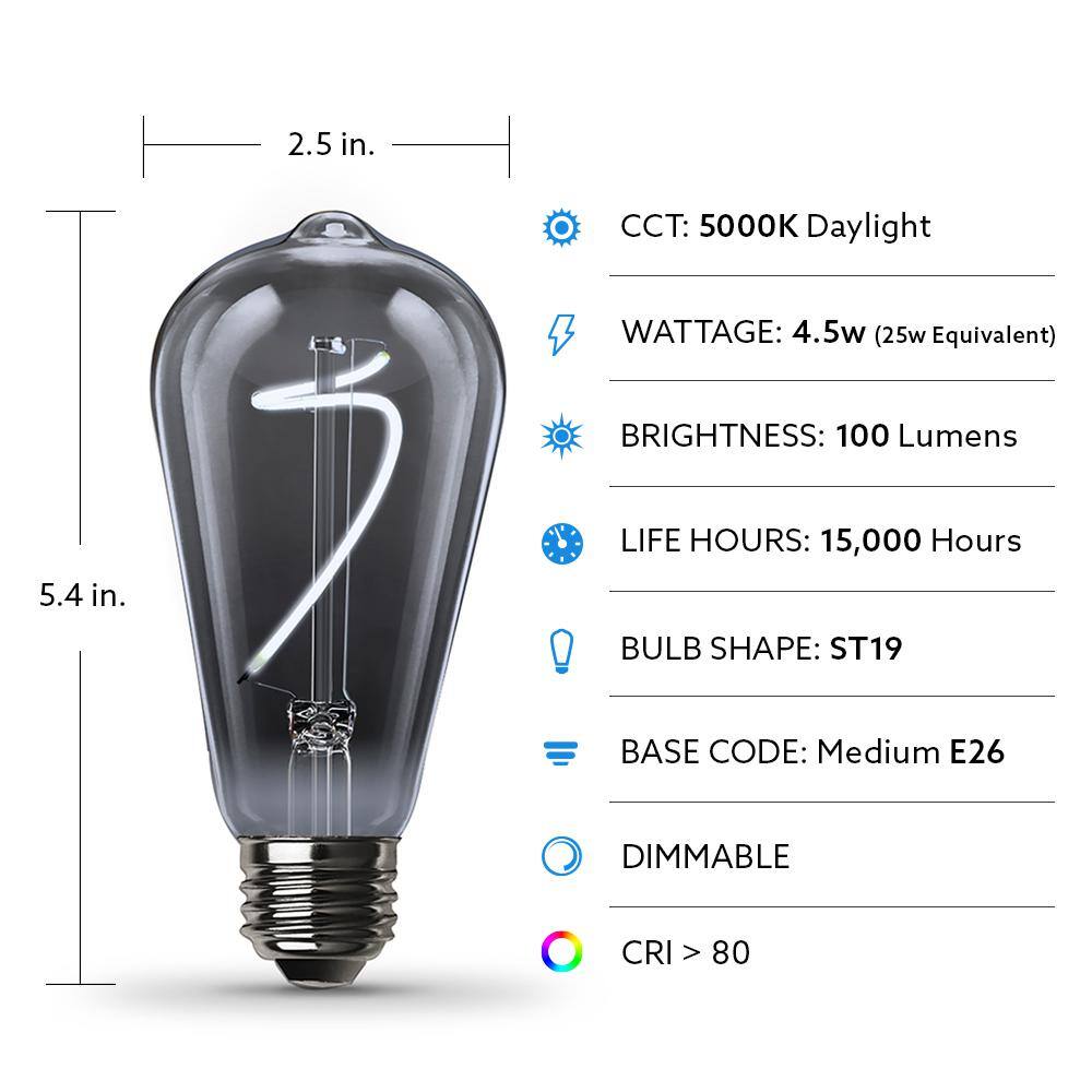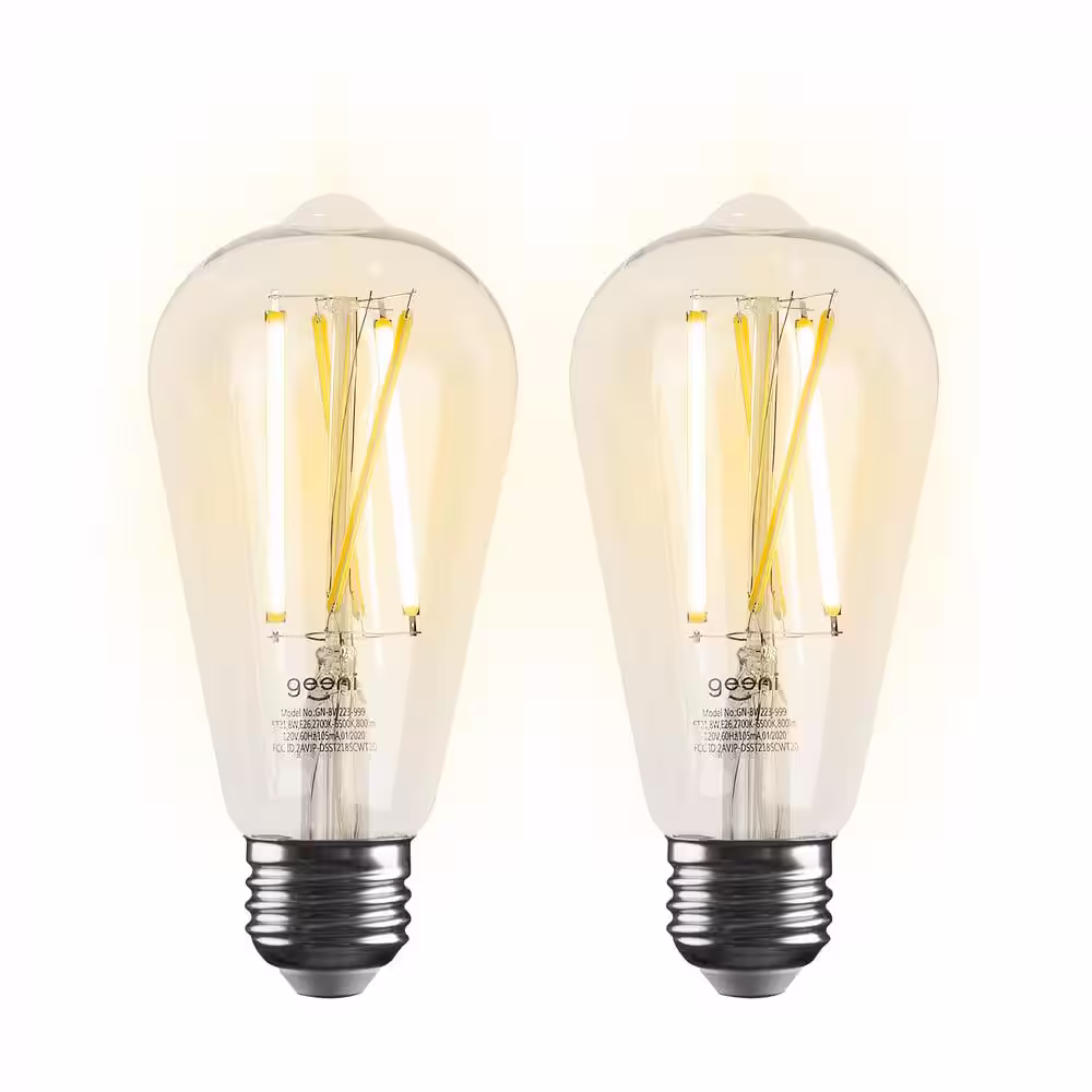 Geeni 60-Watt Equivalent E26 ST21 (ST64) Edison WiFi LED Smart Bulb, 2700K-6500K No Hub Required (2-Pack)