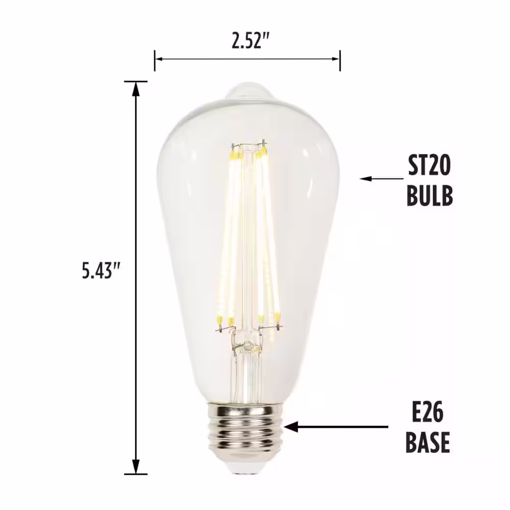 None 40-Watt Equivalent ST20 Dimmable Clear E26 Edison Filament LED Light Bulb 3000K (6-Pack)