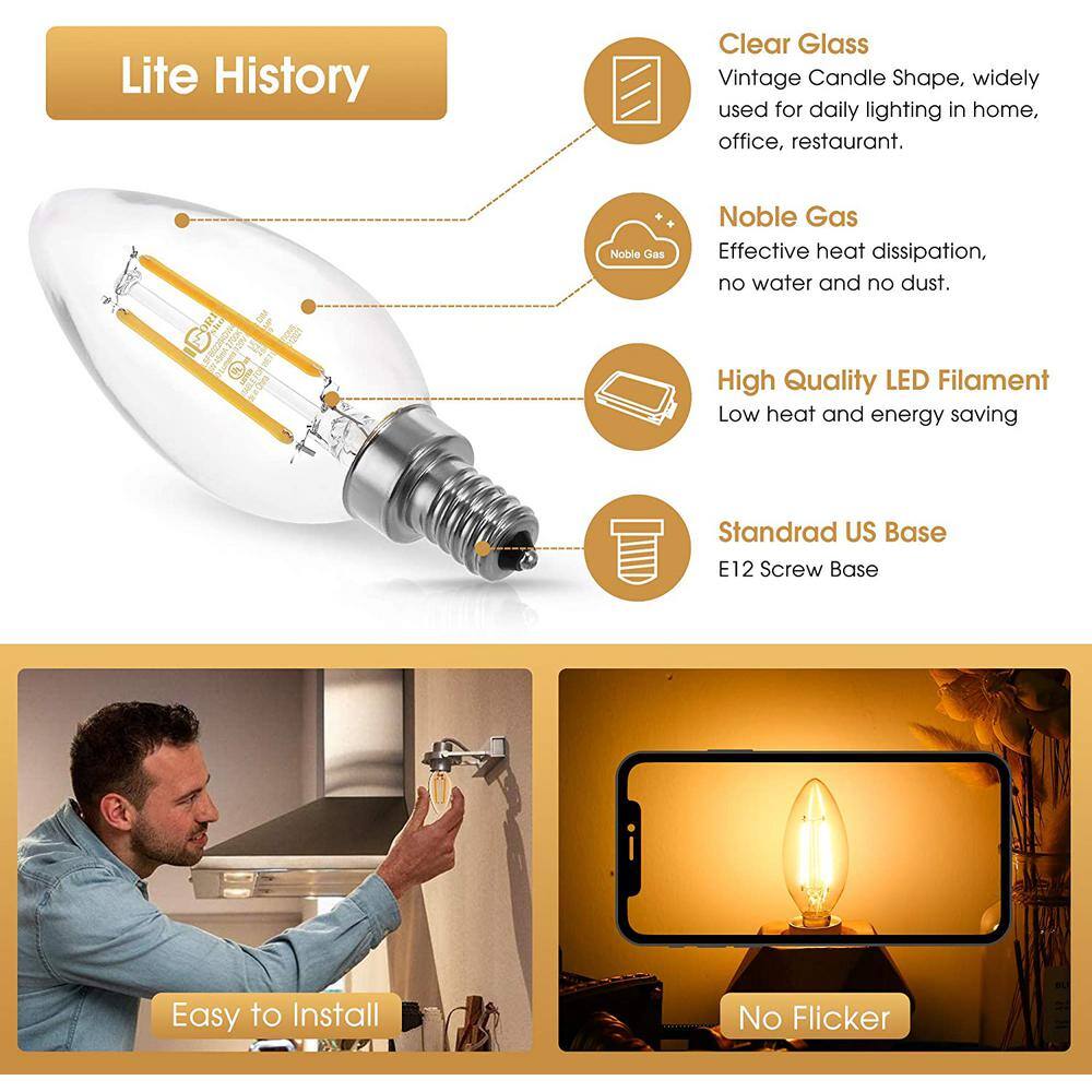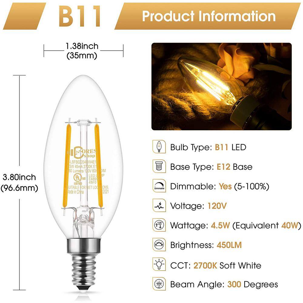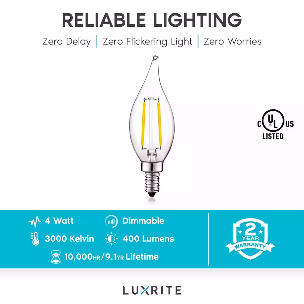 LUXRITE 40-Watt Equivalent CA11 Dimmable LED Light Bulbs UL Listed 3000K Soft White (12-Pack)