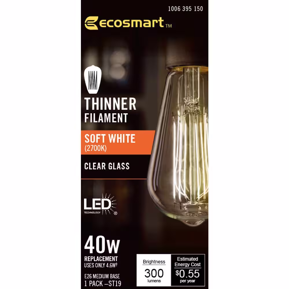Globe Electric 25 Watt Equivalent Luxe Dimmable Spiral Filament Vintage Edison LED Light Bulb, Warm Amber Light