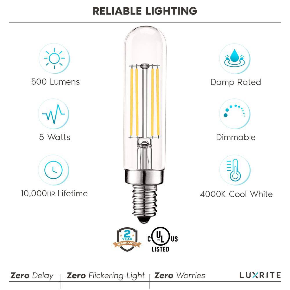 LUXRITE 60-Watt Equivalent T6 T6.5 Dimmable Edison LED Light Bulbs 5-Watt UL Listed 4000K Cool White (6-Pack)