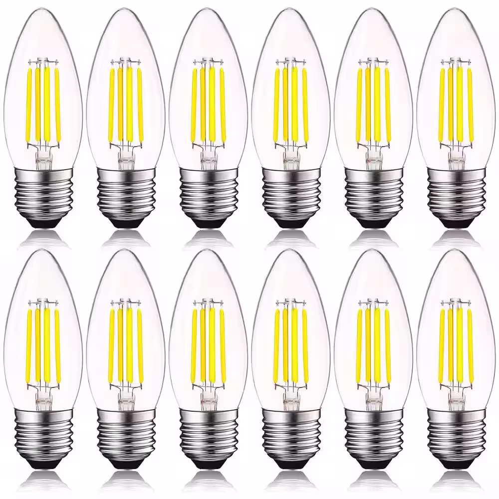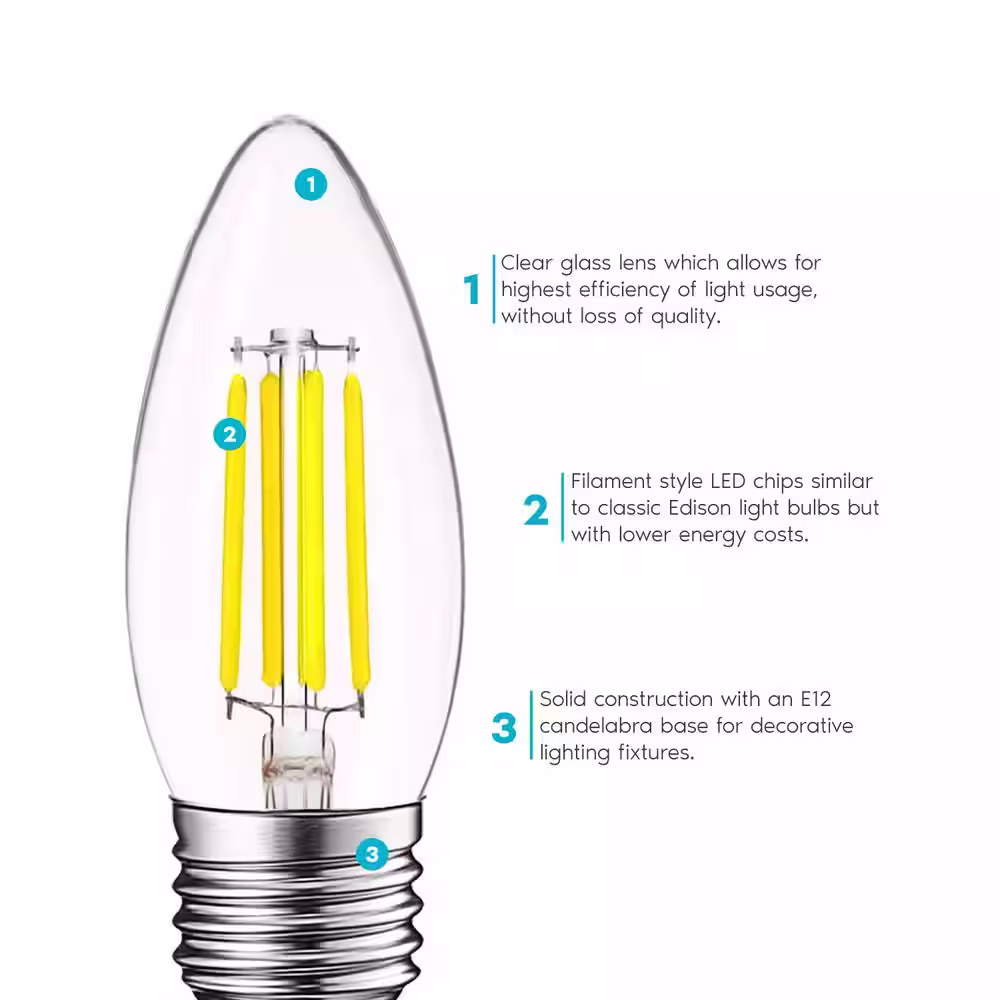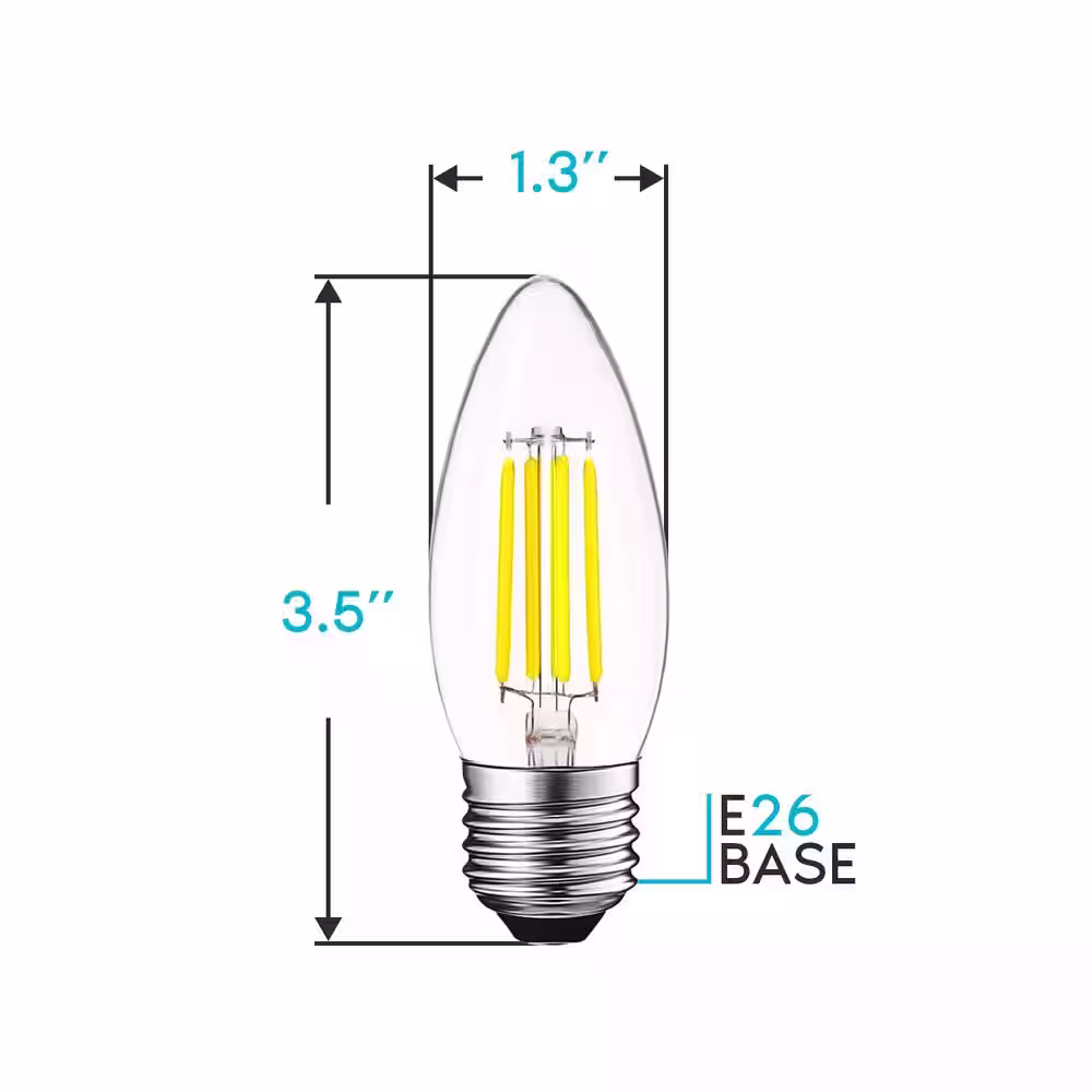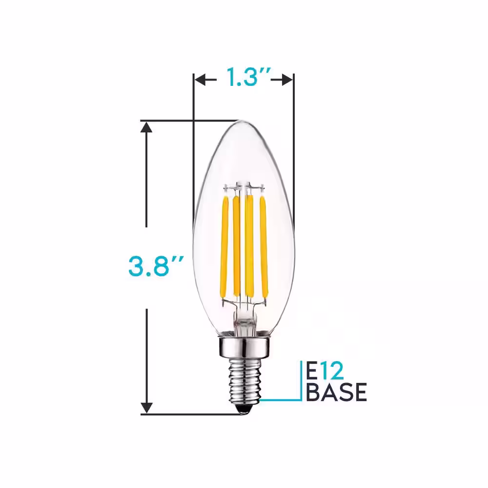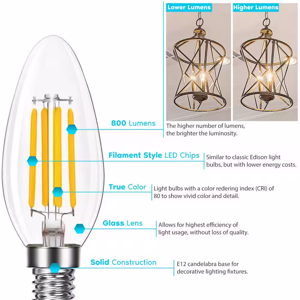 LUXRITE 60-Watt Equivalent B10 Dimmable LED Light Bulbs Clear Glass Filament 5000K Bright White (12-Pack)