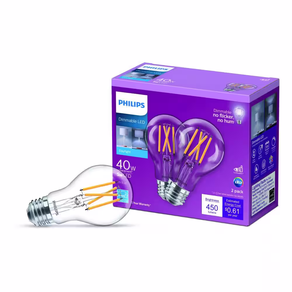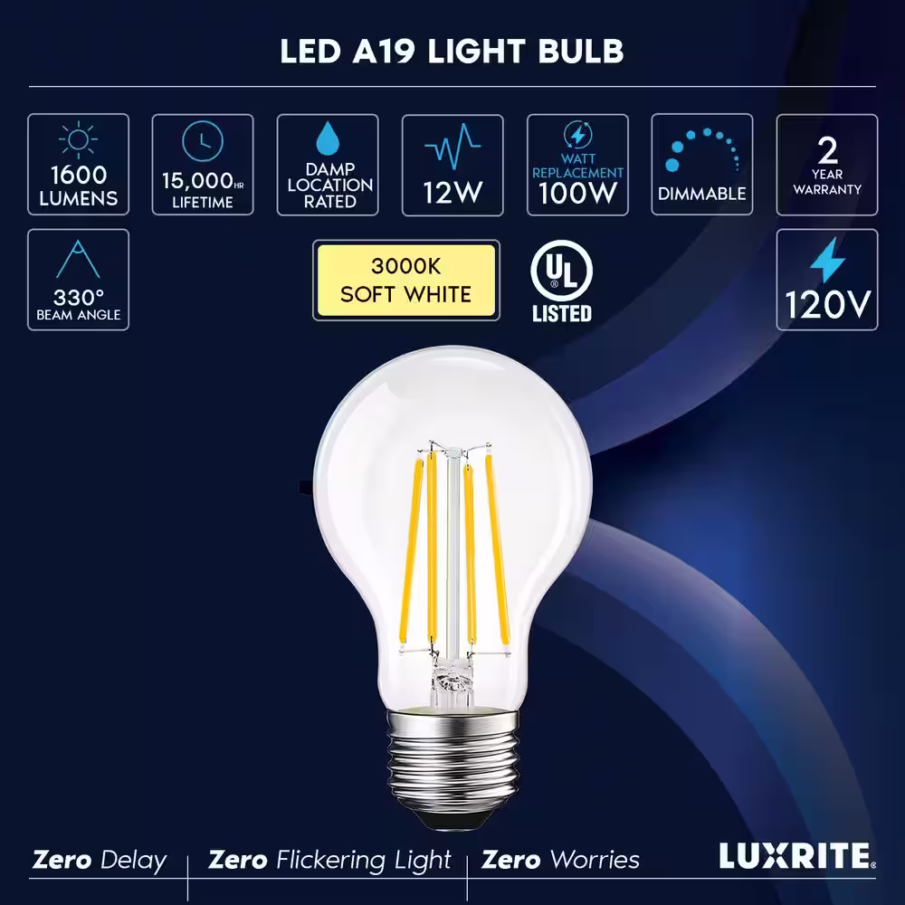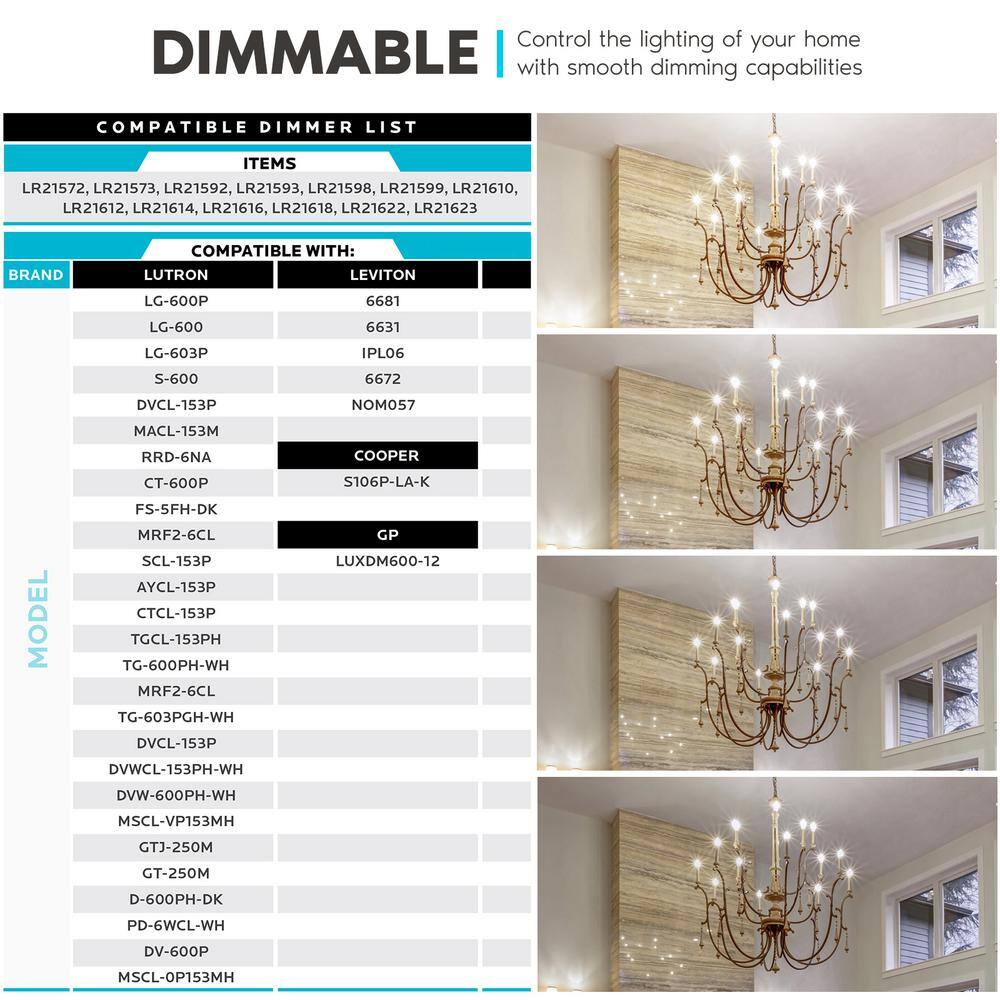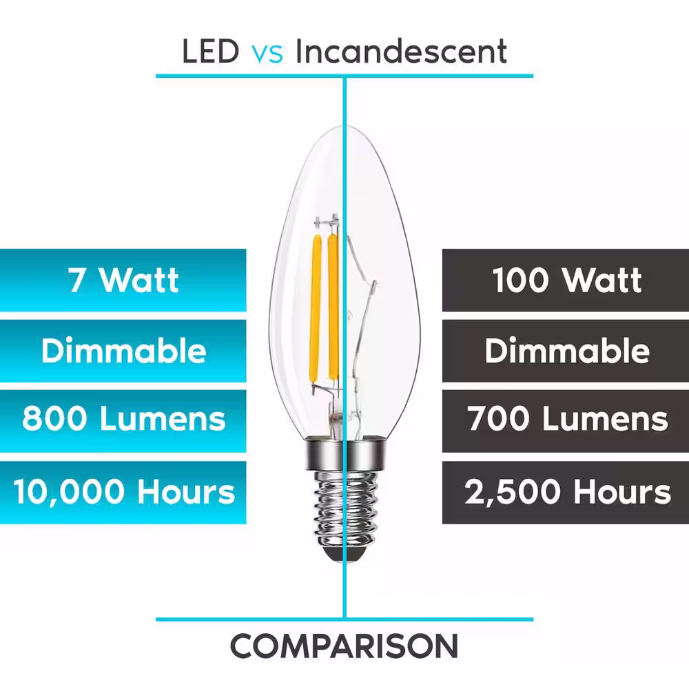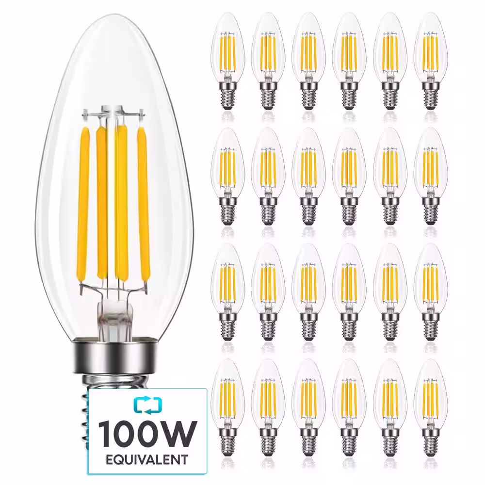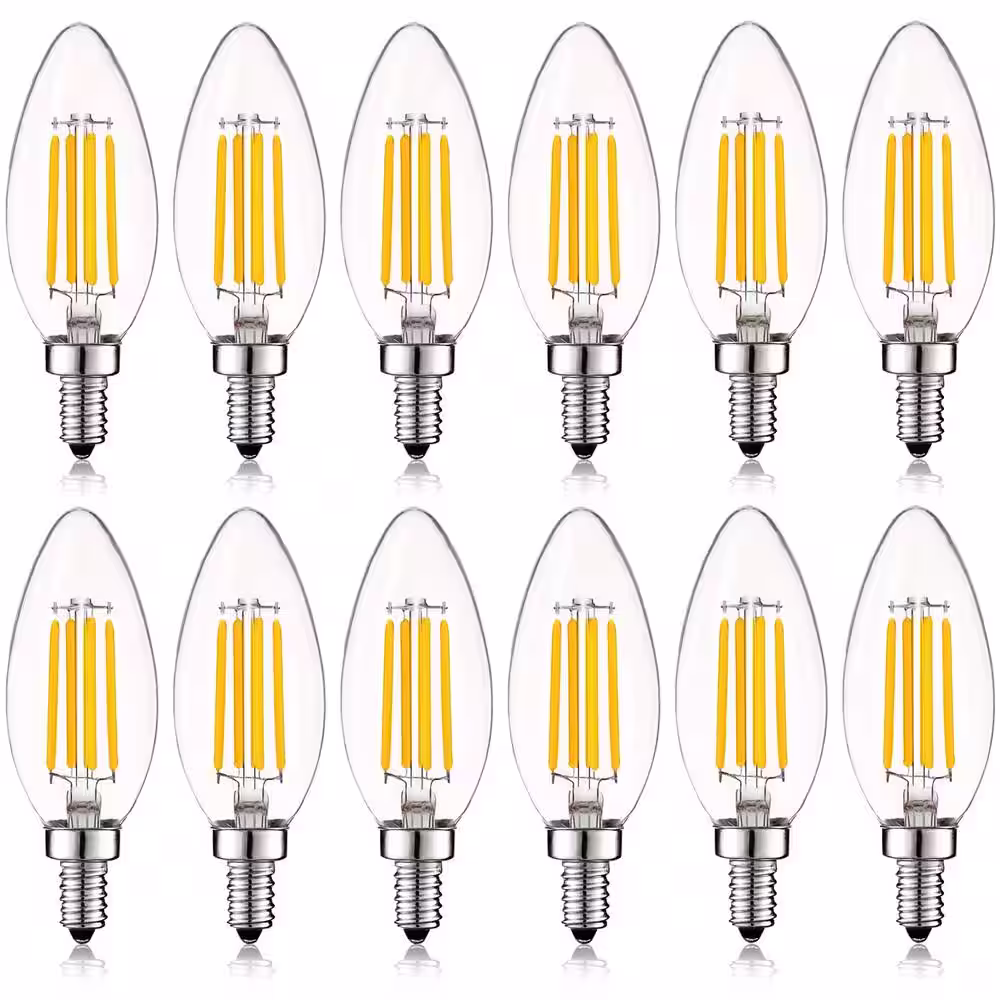 LUXRITE 60-Watt Equivalent B10 Dimmable LED Light Bulbs Clear Glass Filament 5000K Bright White (12-Pack)