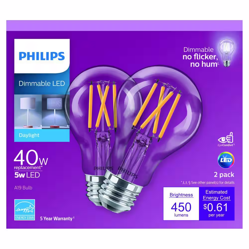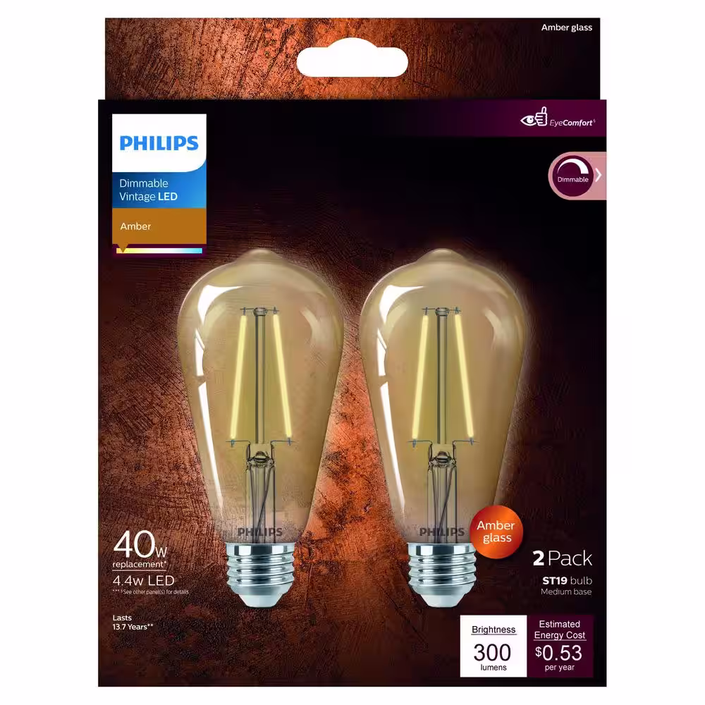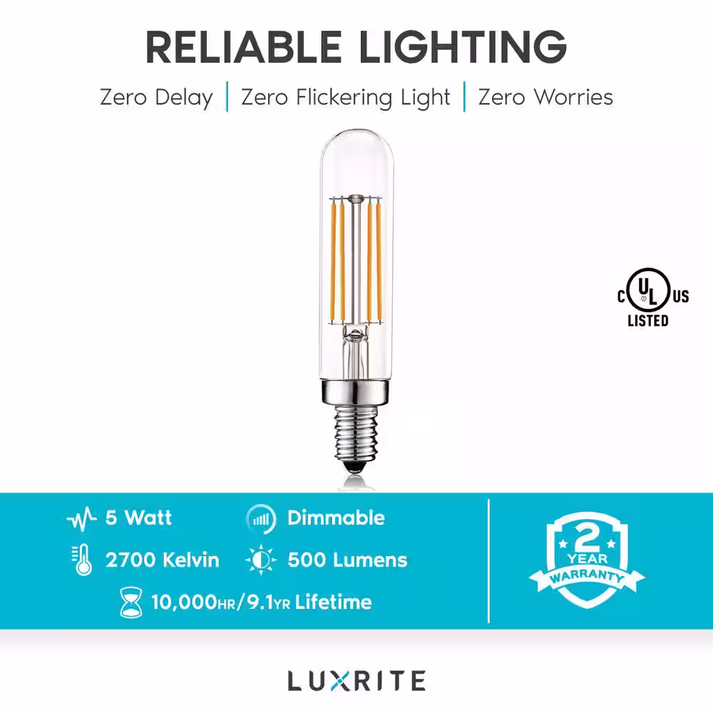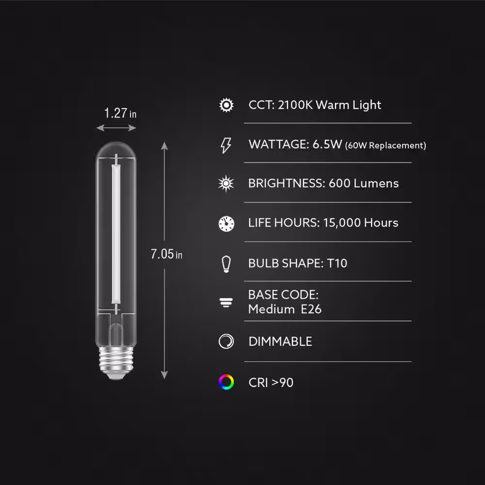 LUXRITE 60-Watt Equivalent T6 T6.5 Dimmable Edison LED Light Bulbs UL Listed 2700K Warm White (12-Pack)
