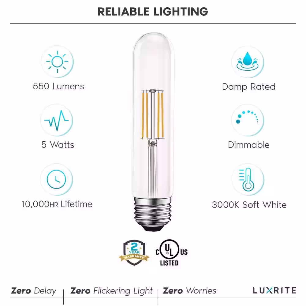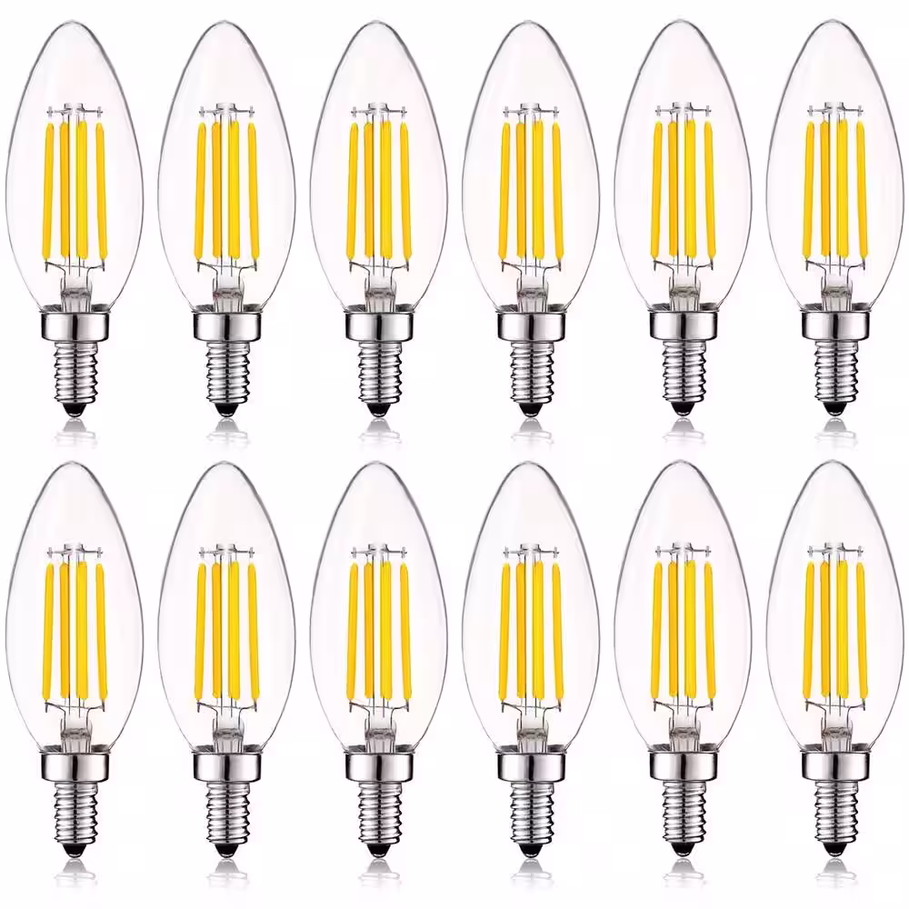 LUXRITE 60-Watt Equivalent B10 Dimmable LED Light Bulbs Clear Glass Filament 3000K Soft White (12-Pack)