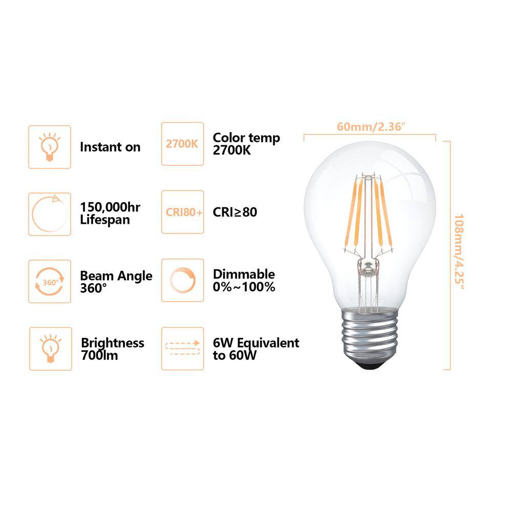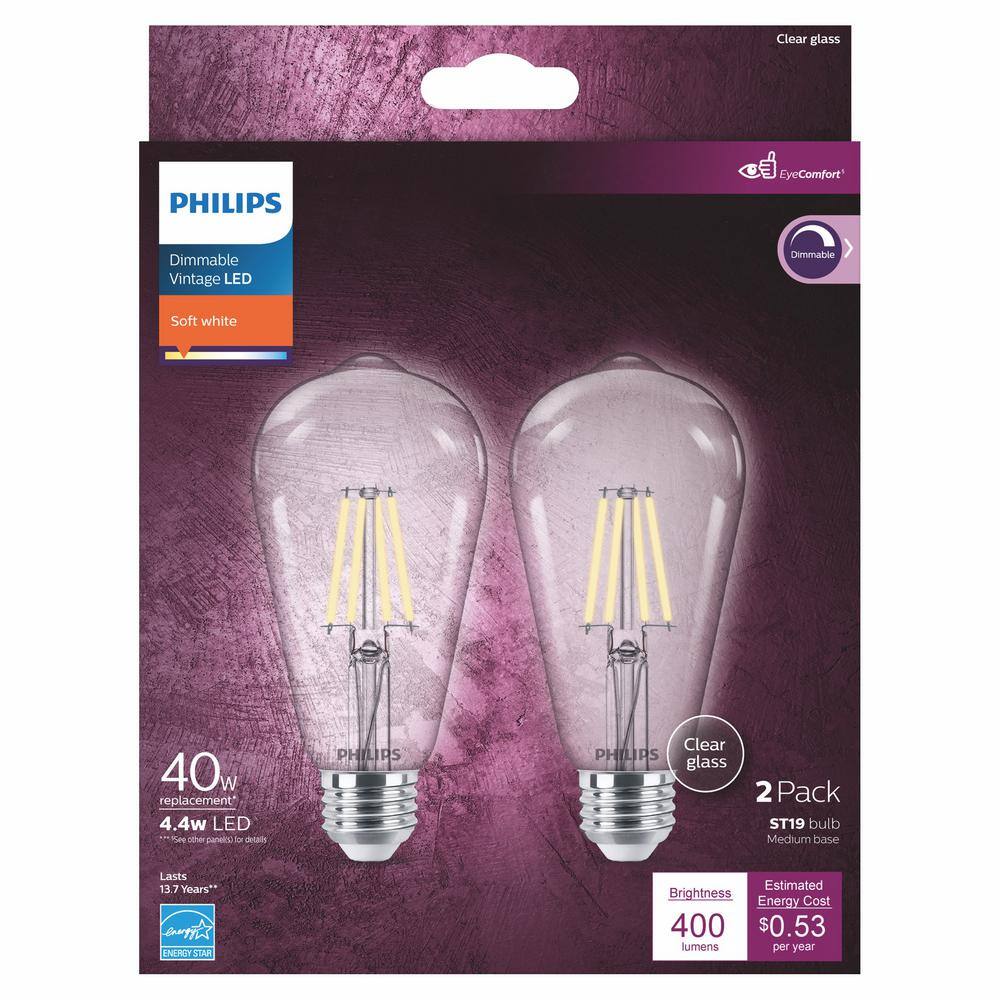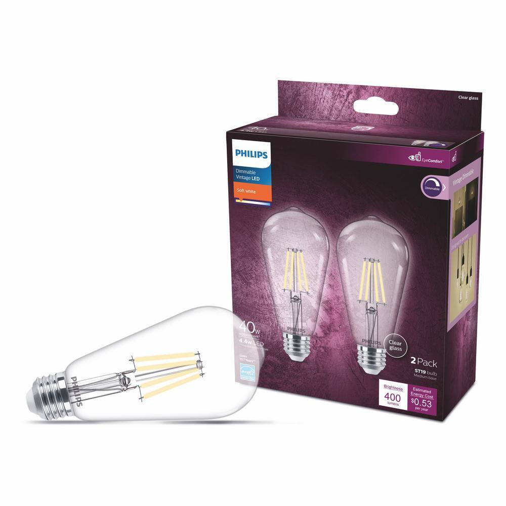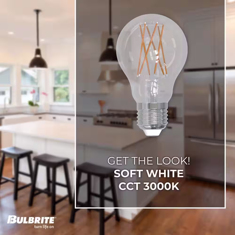 Bulbrite 75-Watt Equivalent A19 Clear Dimmable Edison LED Light Bulb Soft White (2-Pack)