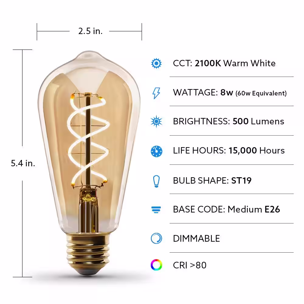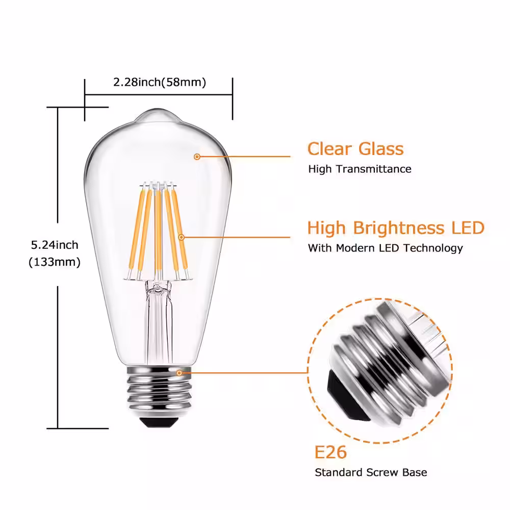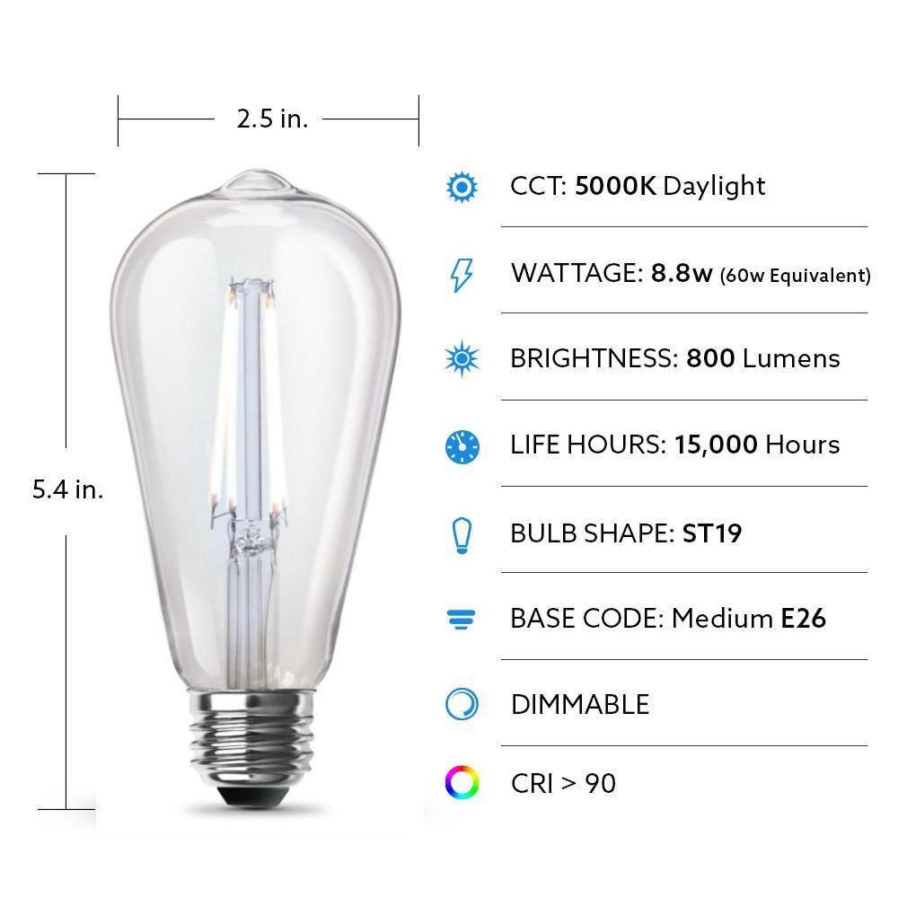 YANSUN 60-Watt Equivalent ST58 E26 Edison LED Light Bulb in Warm White 2700K (8-Pack)