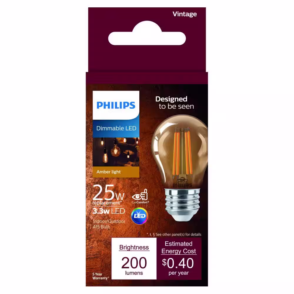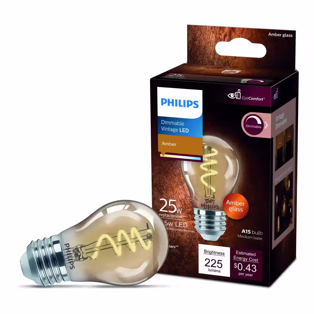 Philips 25-Watt Equivalent A15 Clear Glass Edison LED Light Bulb Amber Warm White (2000K) (1-Pack)
