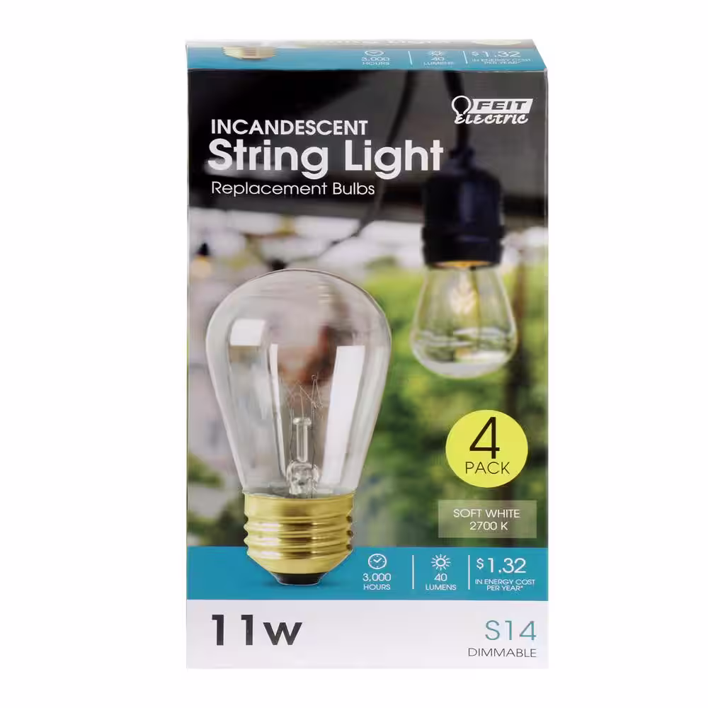 Feit Electric 11-Watt S14 Dimmable Soft White String Light Incandescent Light Bulb (4-Pack)