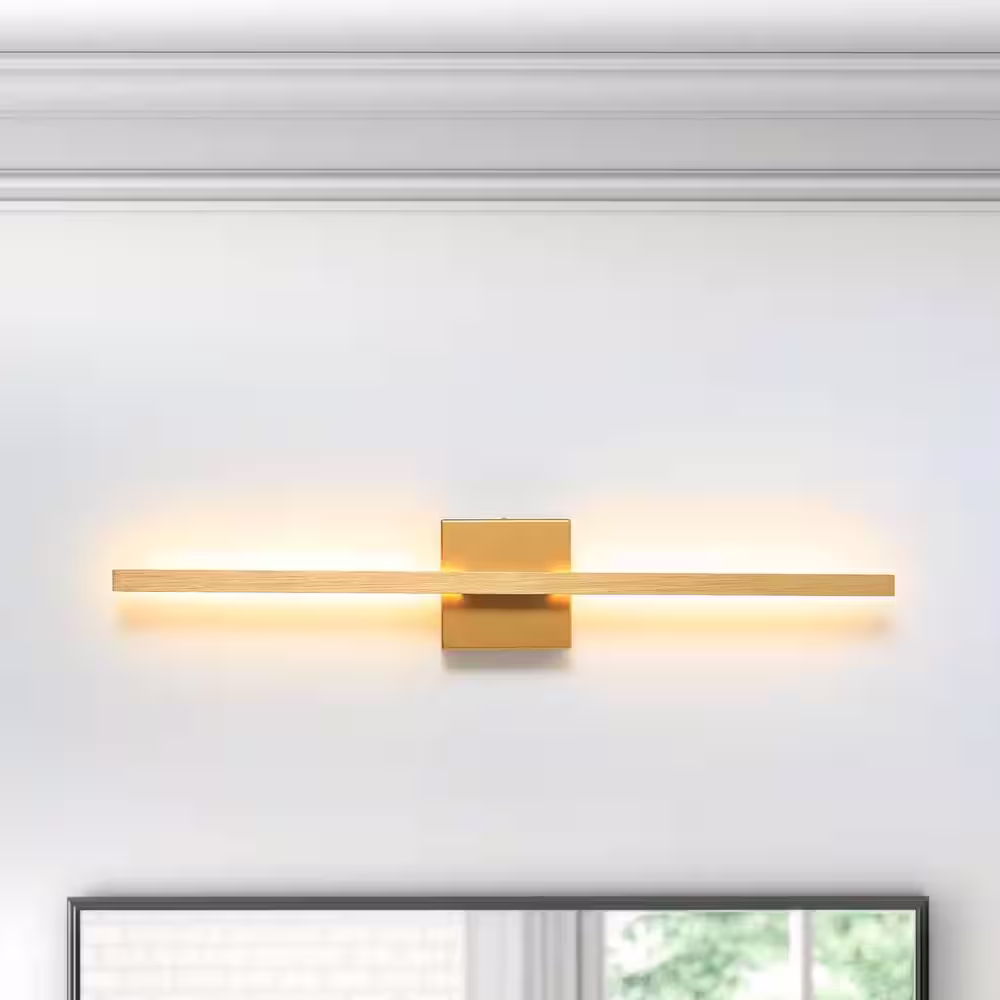 None 1-Light 27.5 in. Straight Line Gold LED Wall Sconces with 3000K Warm Light