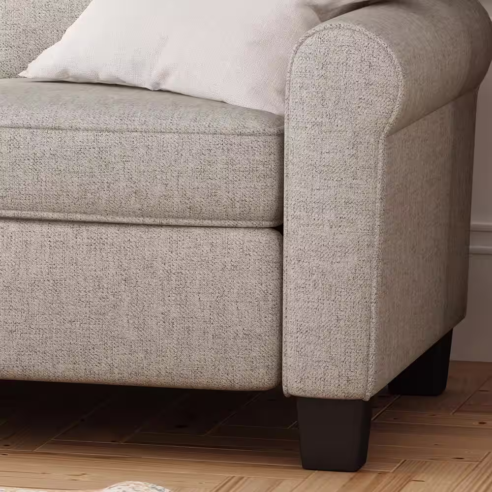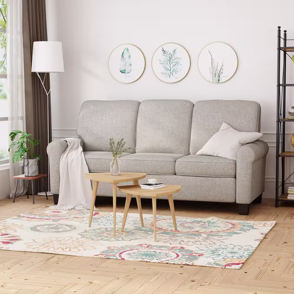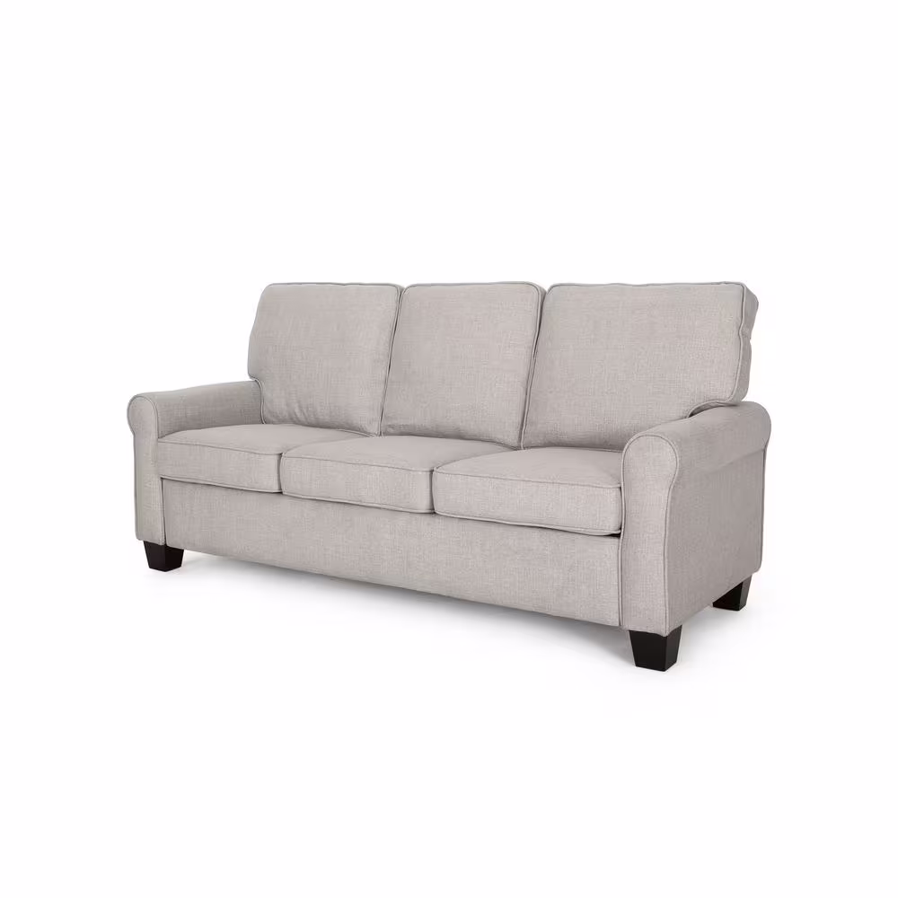 Noble House 75.5 in. Beige/Dark Brown Polyester 3-Seater Lawson Sofa with Round Arms