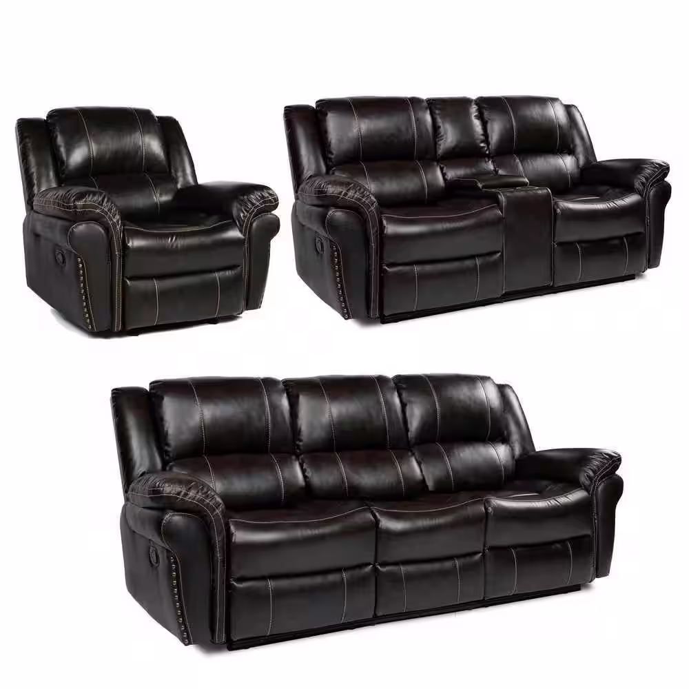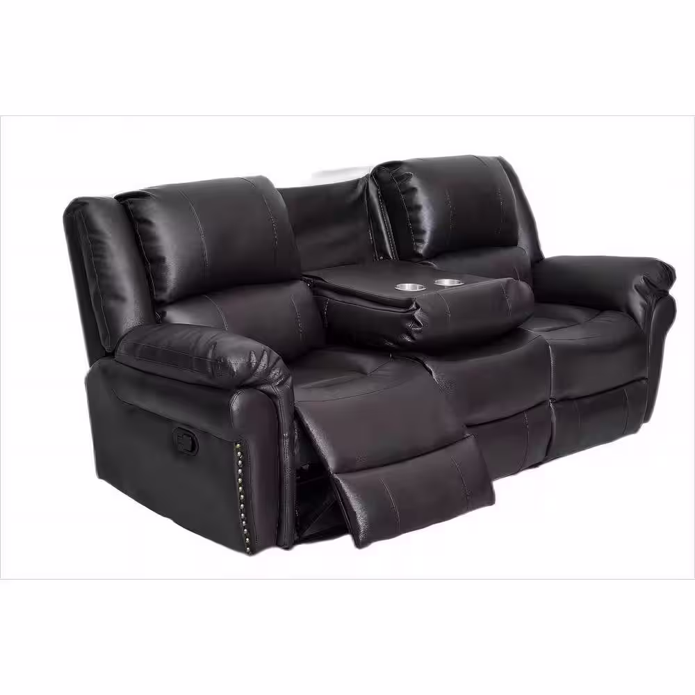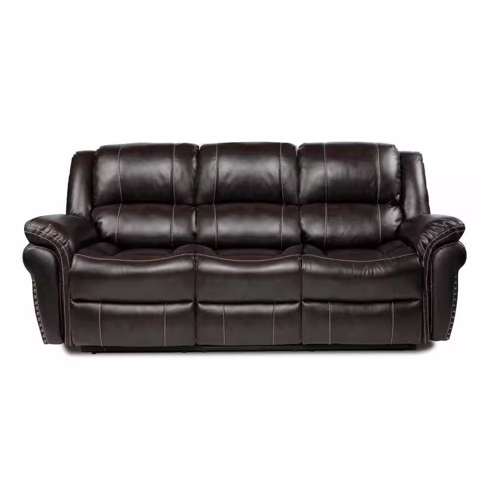 hzlagm Yingj 212 in. Wide Pillow Top Arm Faux Leather Straight Reclining and Storage Sofa in Brown