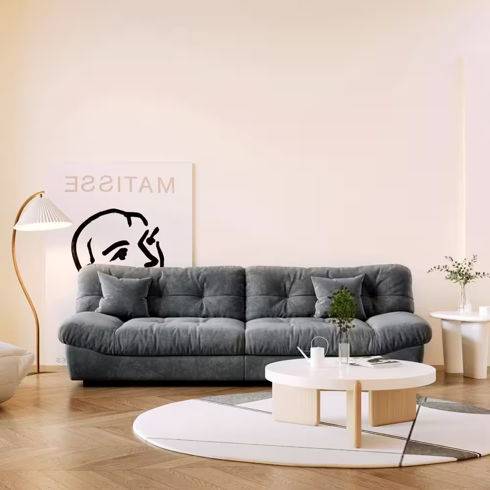 None 63 in.W Modern Straight Arm Linen Fabric Yellow Upholstered Button Loveseat Sofa With Two Pillows