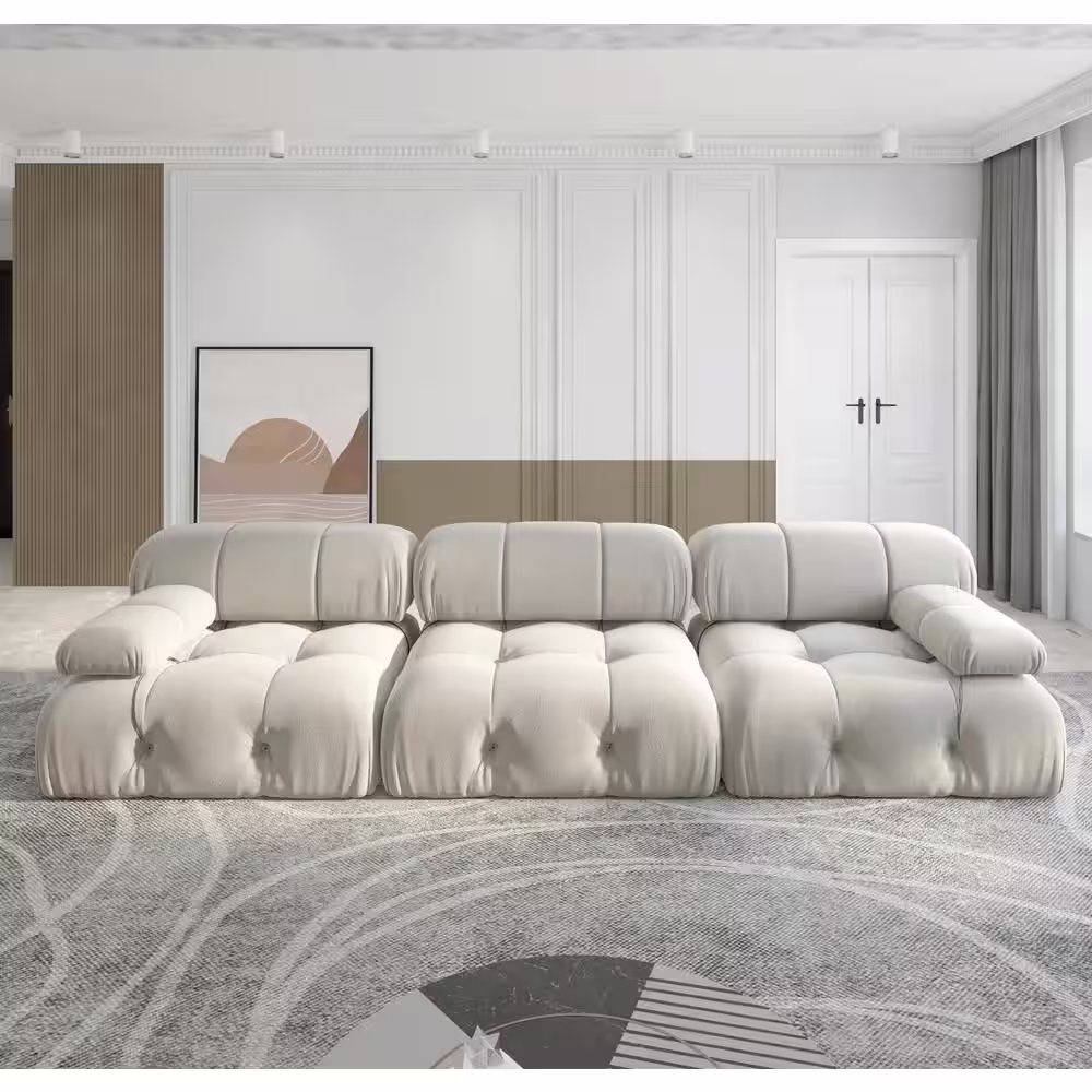 Magic Home 3-Piece Teddy Velvet Comfy Seat Lazy Sofa Living Room Set in Yellow (2 Seater + 3 Seater + 4 Seater )