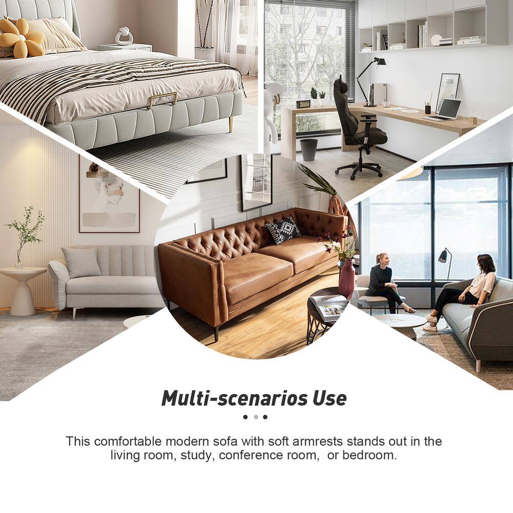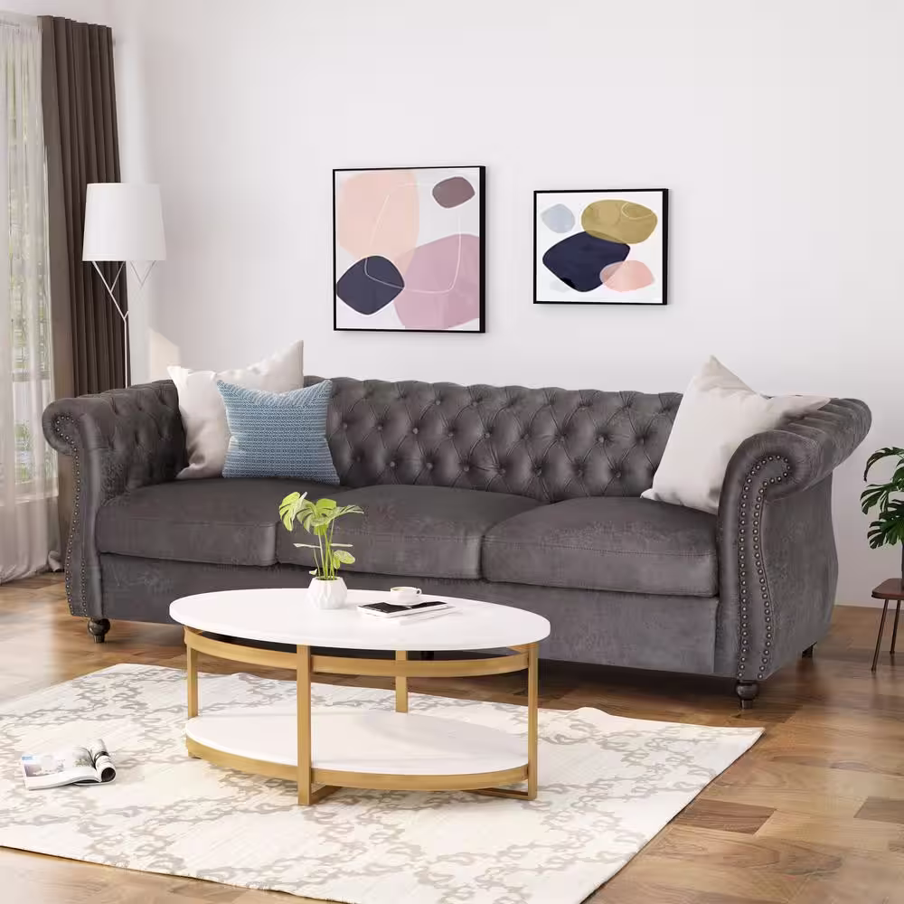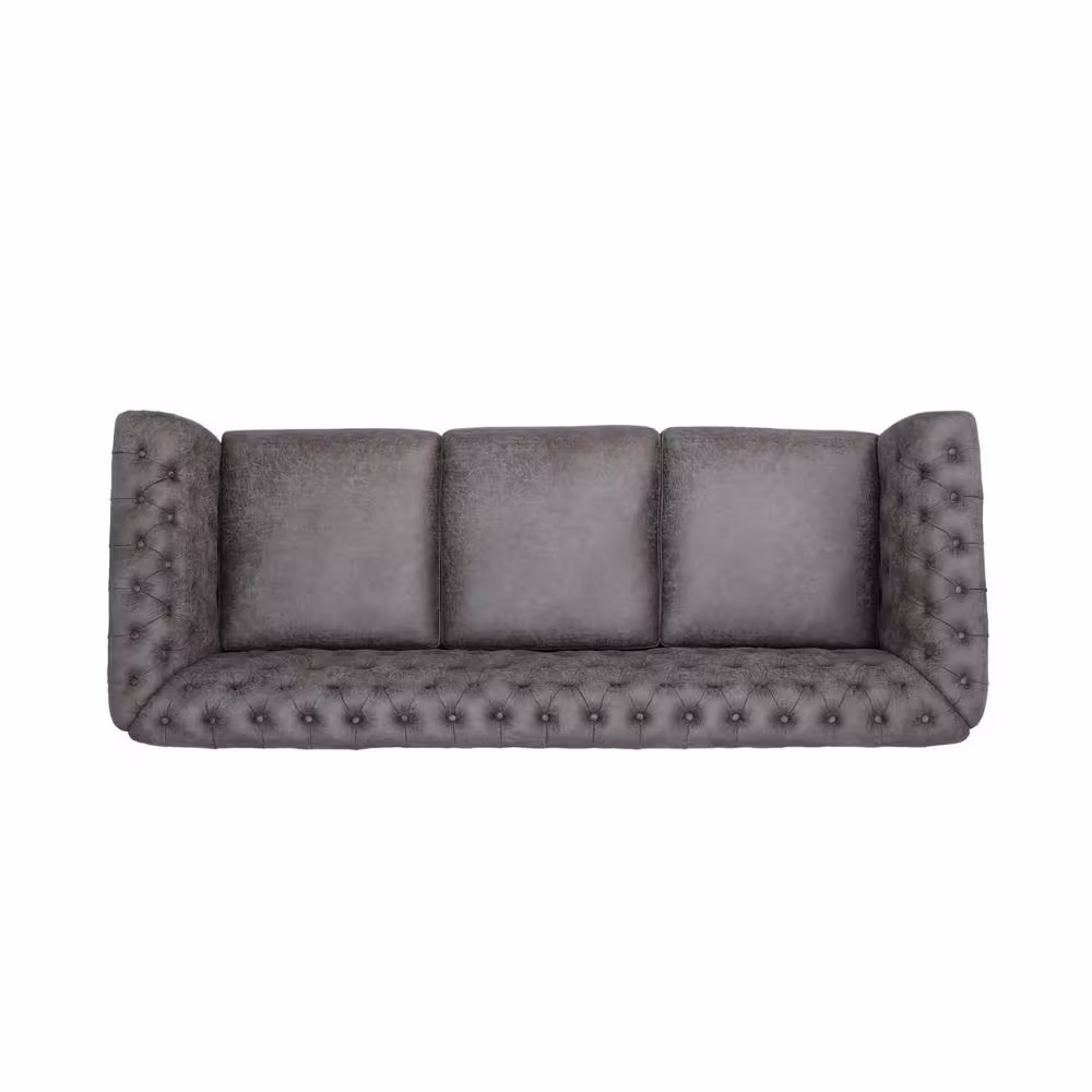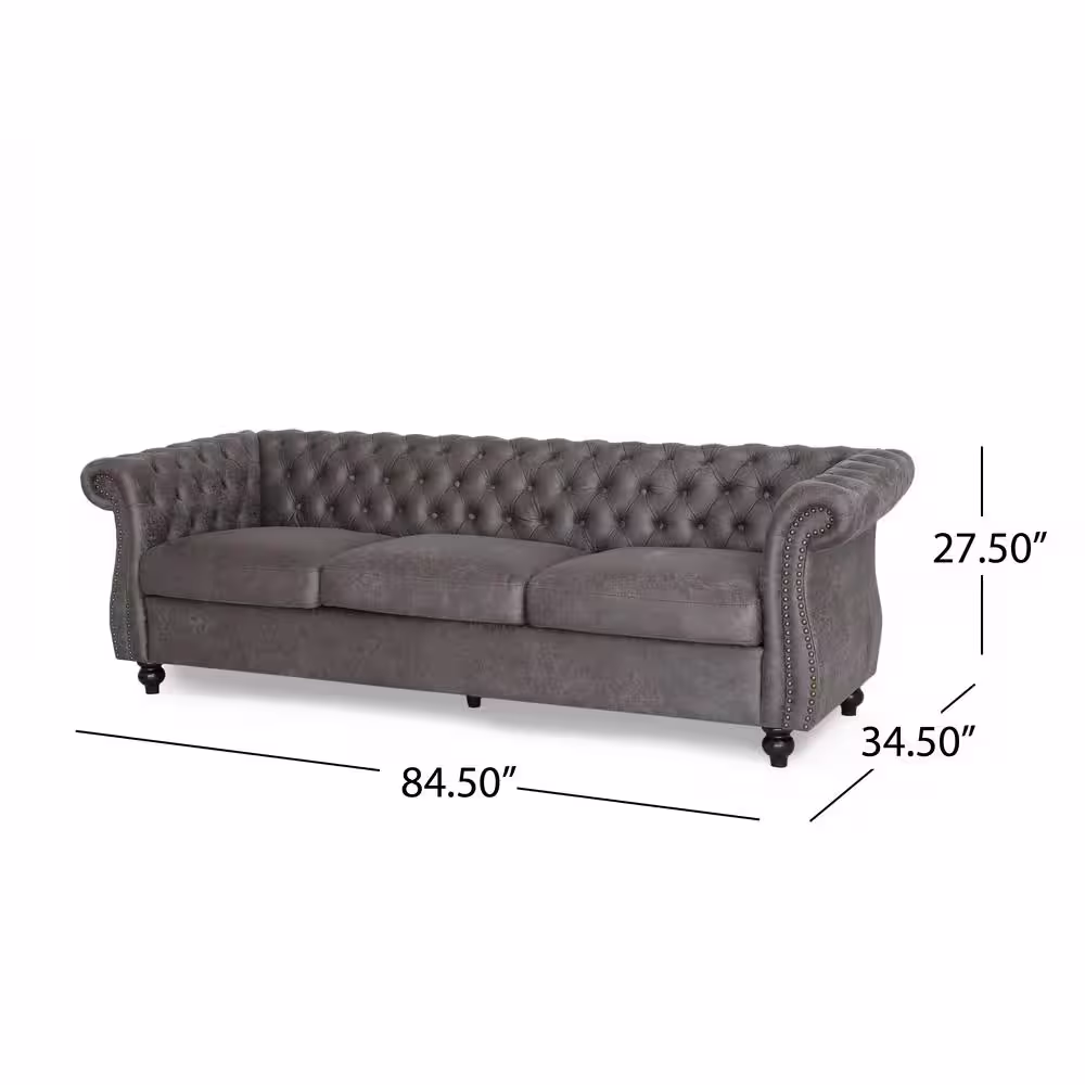 Noble House Somerville 84.5 in. Slate Solid Microfiber 3-Seats Cheserfield Sofa with Removable Cushions