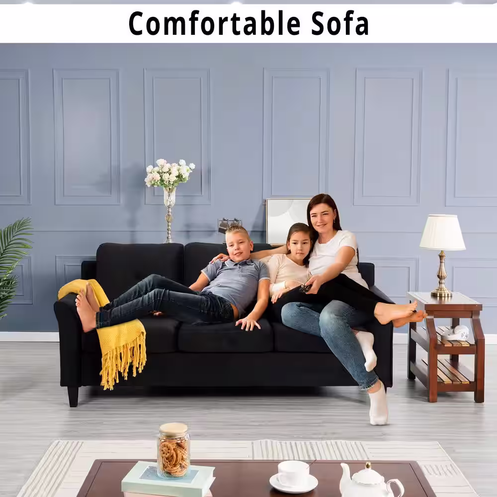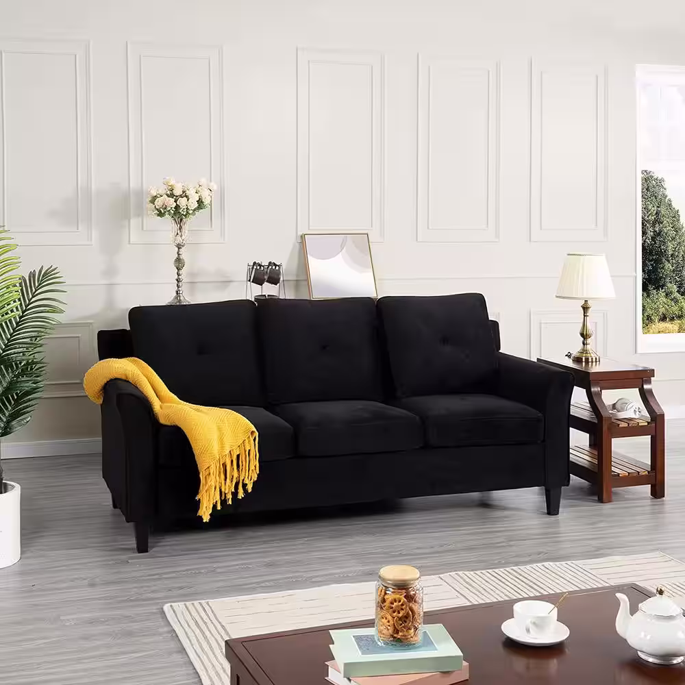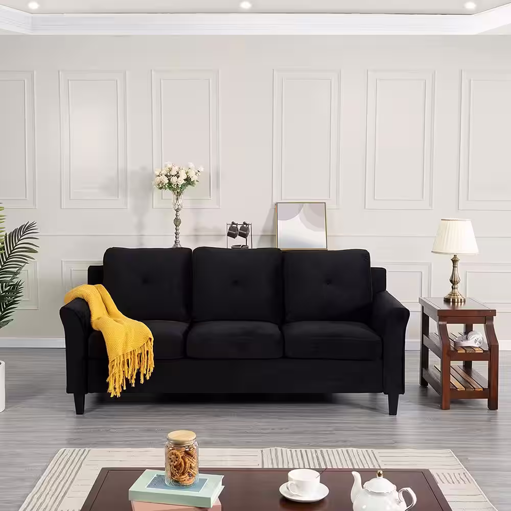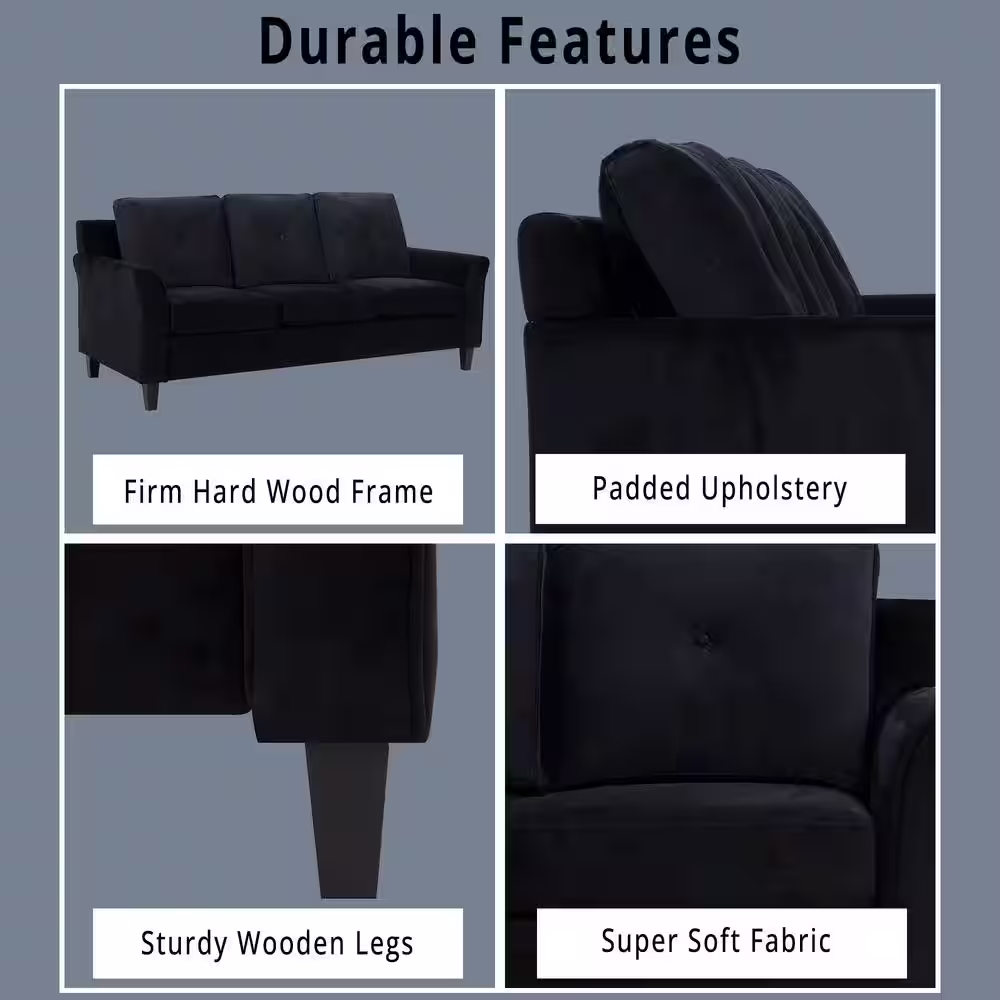 Noble House Somerville 84.5 in. Slate Solid Microfiber 3-Seats Cheserfield Sofa with Removable Cushions