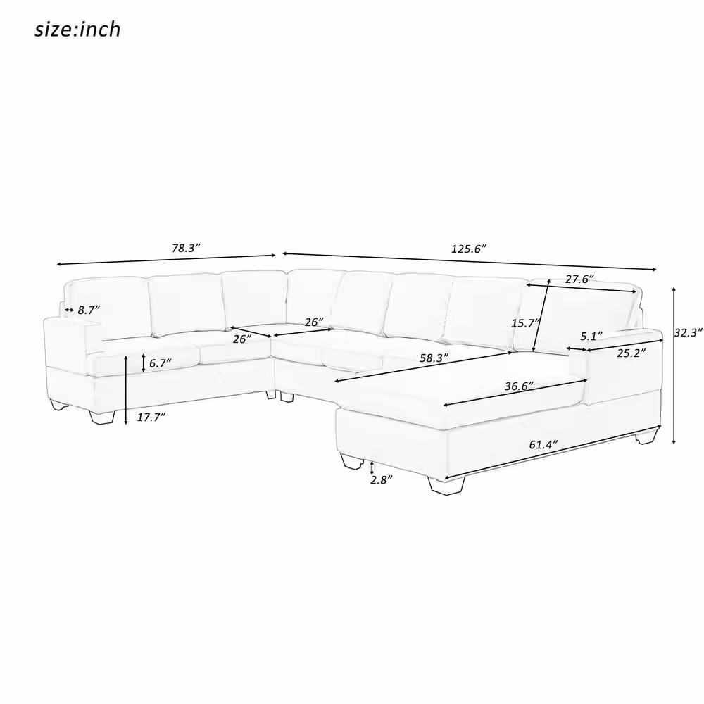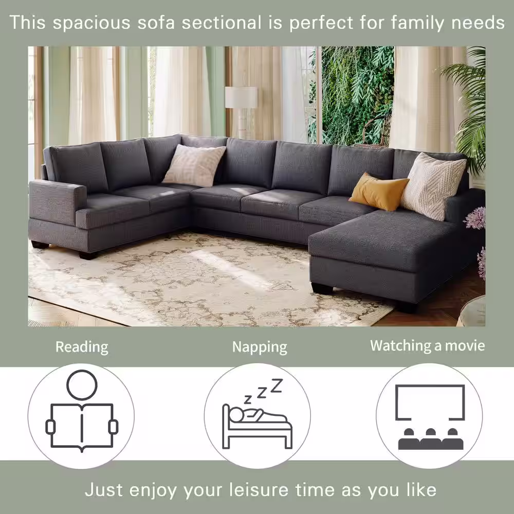 Harper & Bright Designs Modern Large 125.6 in W Square Arm Polyester Upholstered U Shaped Sectional Sofa in Gray