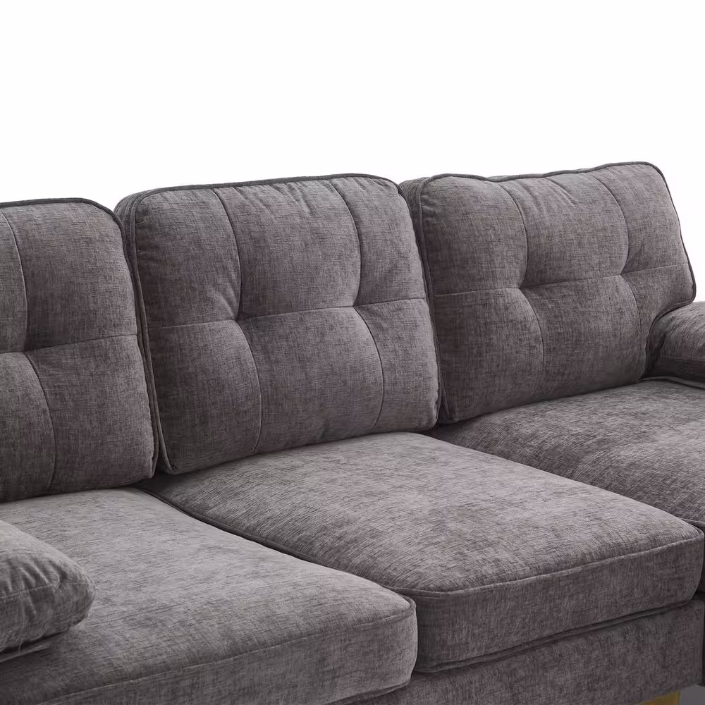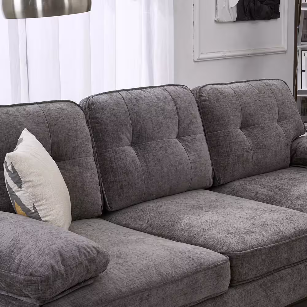 None 83 in. Wide Square Arm Chenille Mid-Century L-Shaped Sofa in Dark Gray 3-Seats