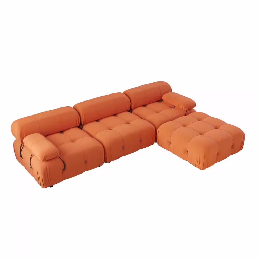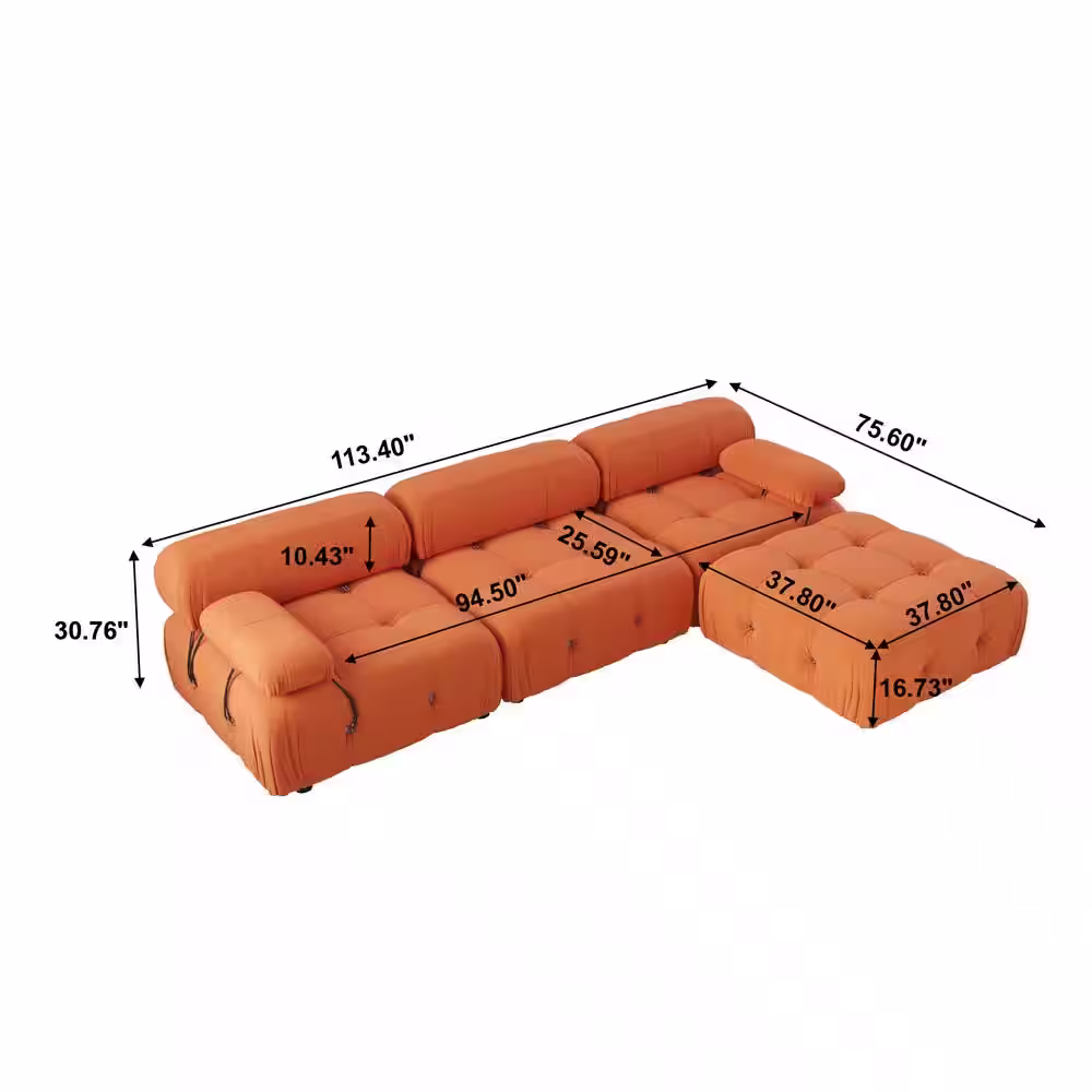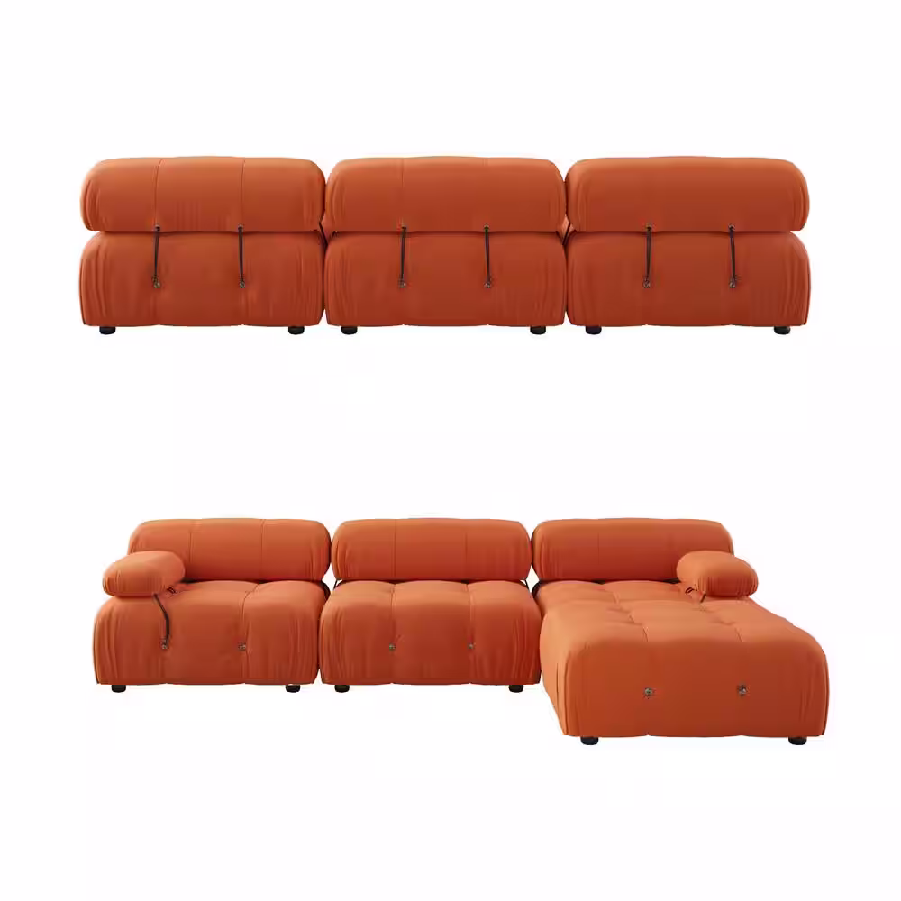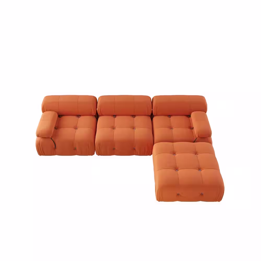 J&E Home 113.4 in. W Orange Square Arm Velvet L-Shaped 3-Seater Free Combination Sofa