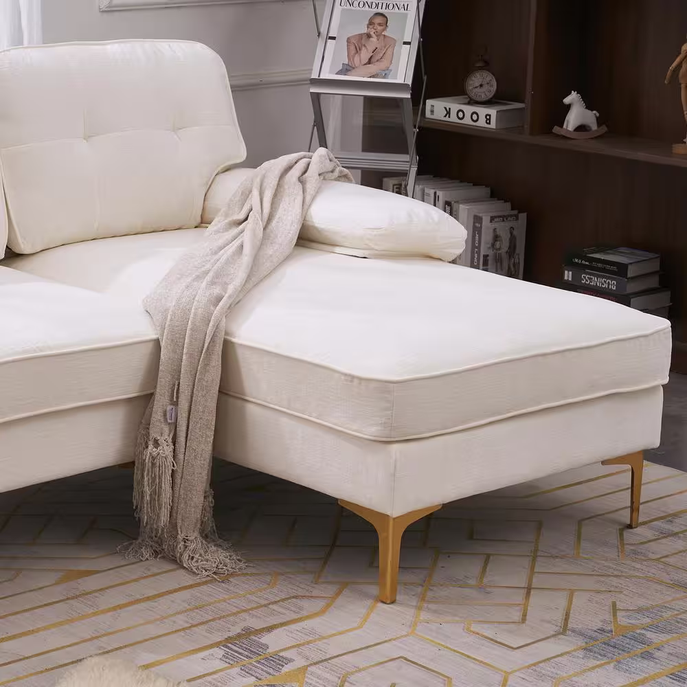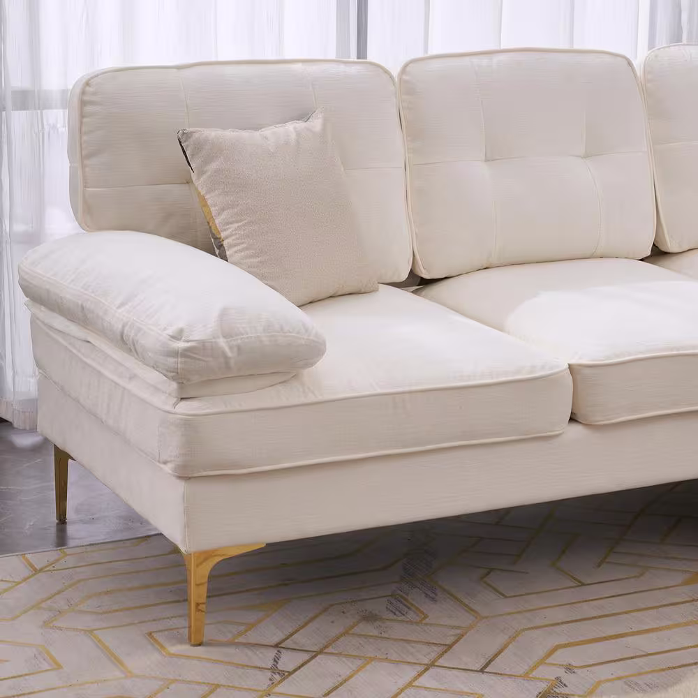 None 83 in. Wide Square Arm Chenille Mid-Century L-Shaped Sofa in Beige 3-Seats
