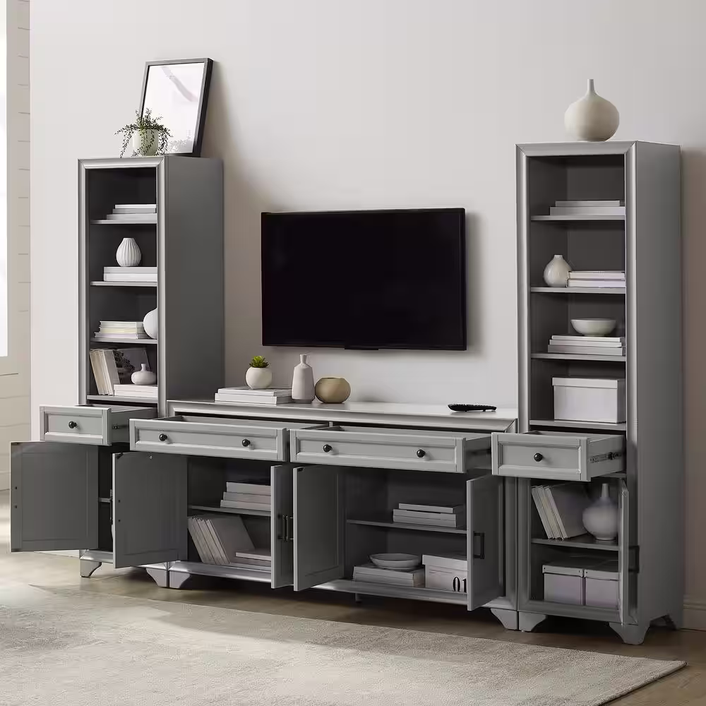 CROSLEY FURNITURE Tara 97 in. Gray Entertainment Center with 4-Drawers Fits TV's up to 65 in. with Bookshelves