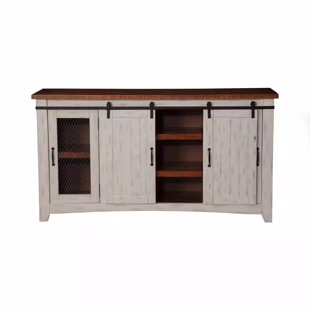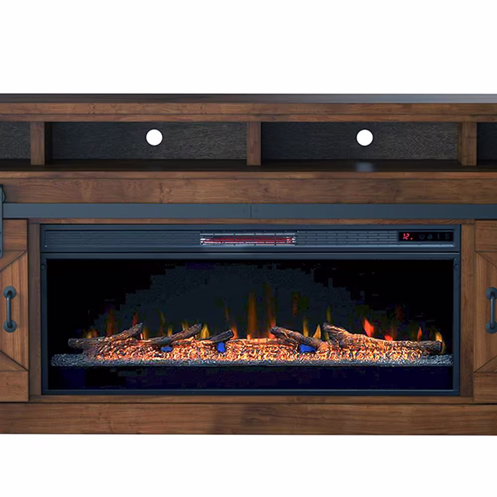 None Bridgevine Home 86 in. No Assembly Required Fruitwood Finish Solid Wood TV Stand, Fits TVs up to 95 in.