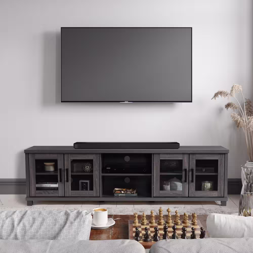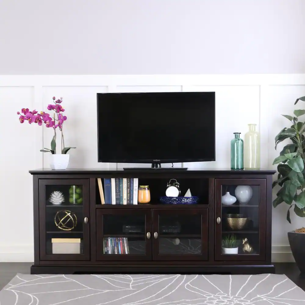 None Presque 68 in. Black Grain Rectangular TV Stand Fits TV's up to 75 in.