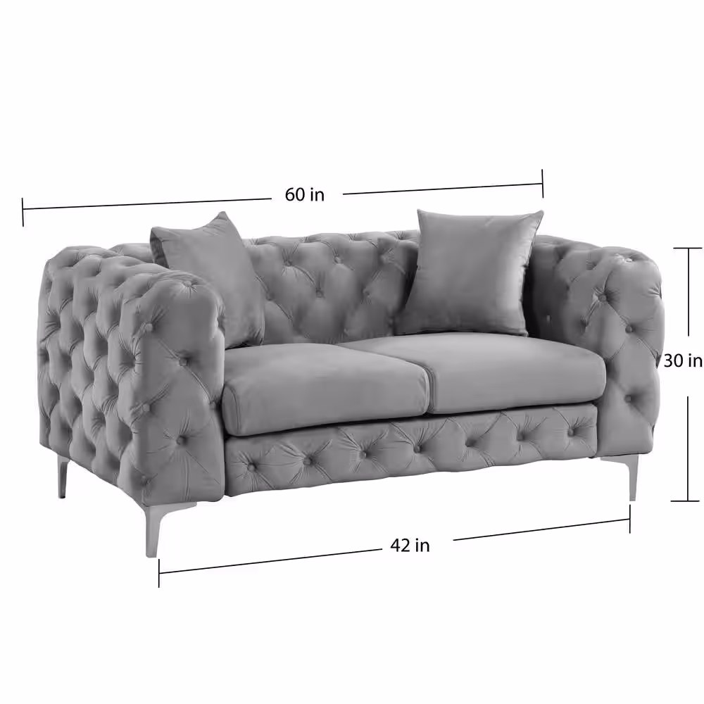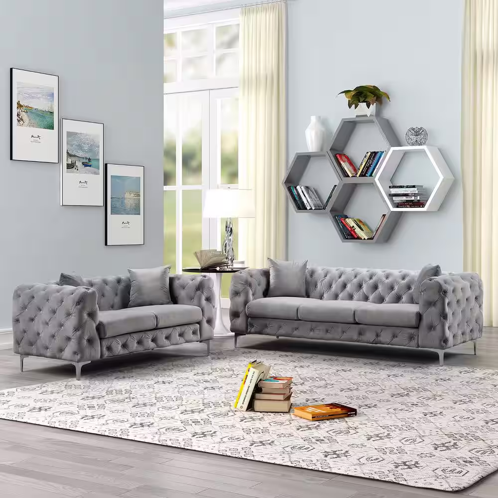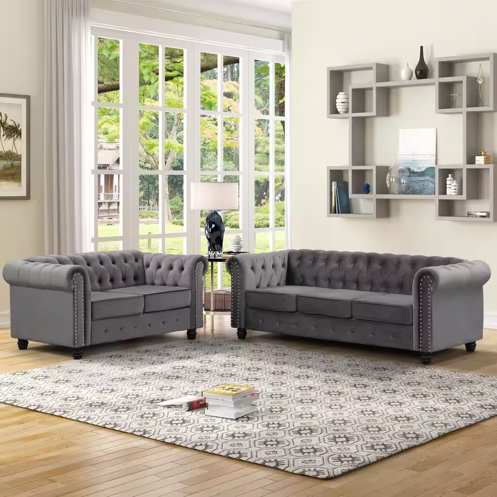Morden Fort Velvet Couches for Living Room Sets Loveseat and Sofa 2 Pieces Top in Gray