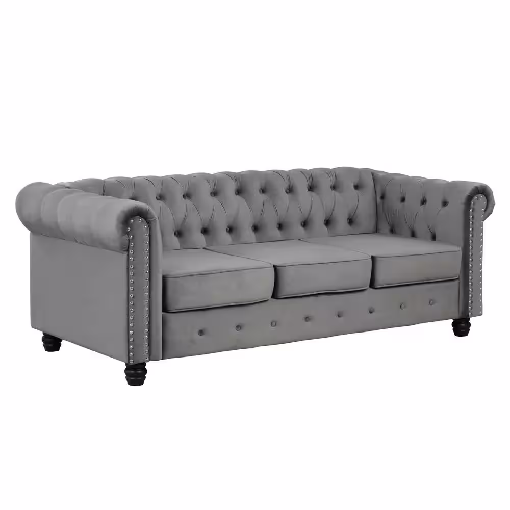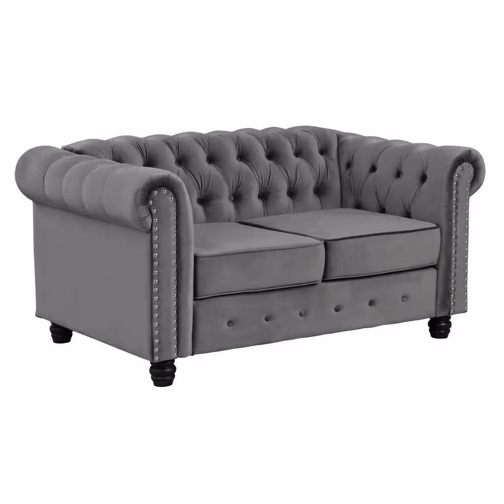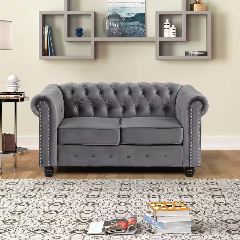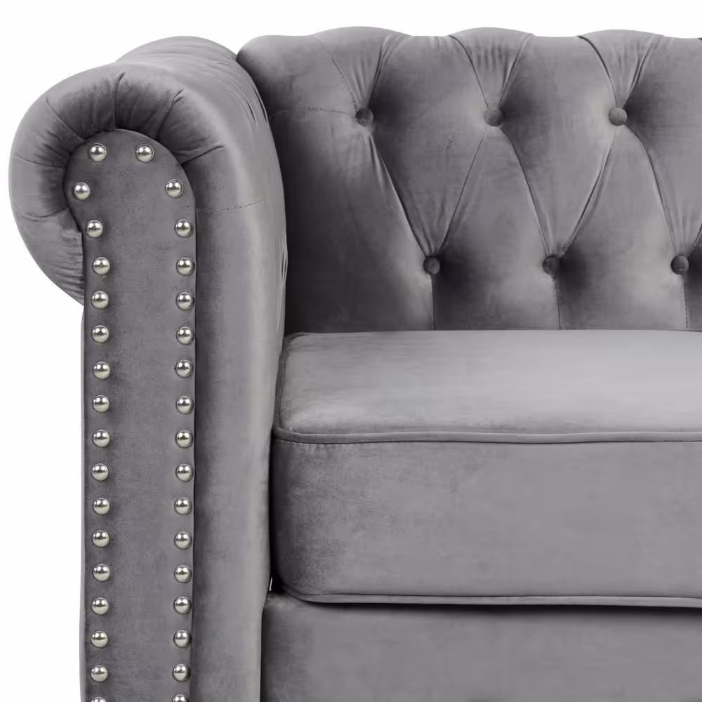 Morden Fort Velvet Couches for Living Room Sets Loveseat and Sofa 2 Pieces Top in Gray