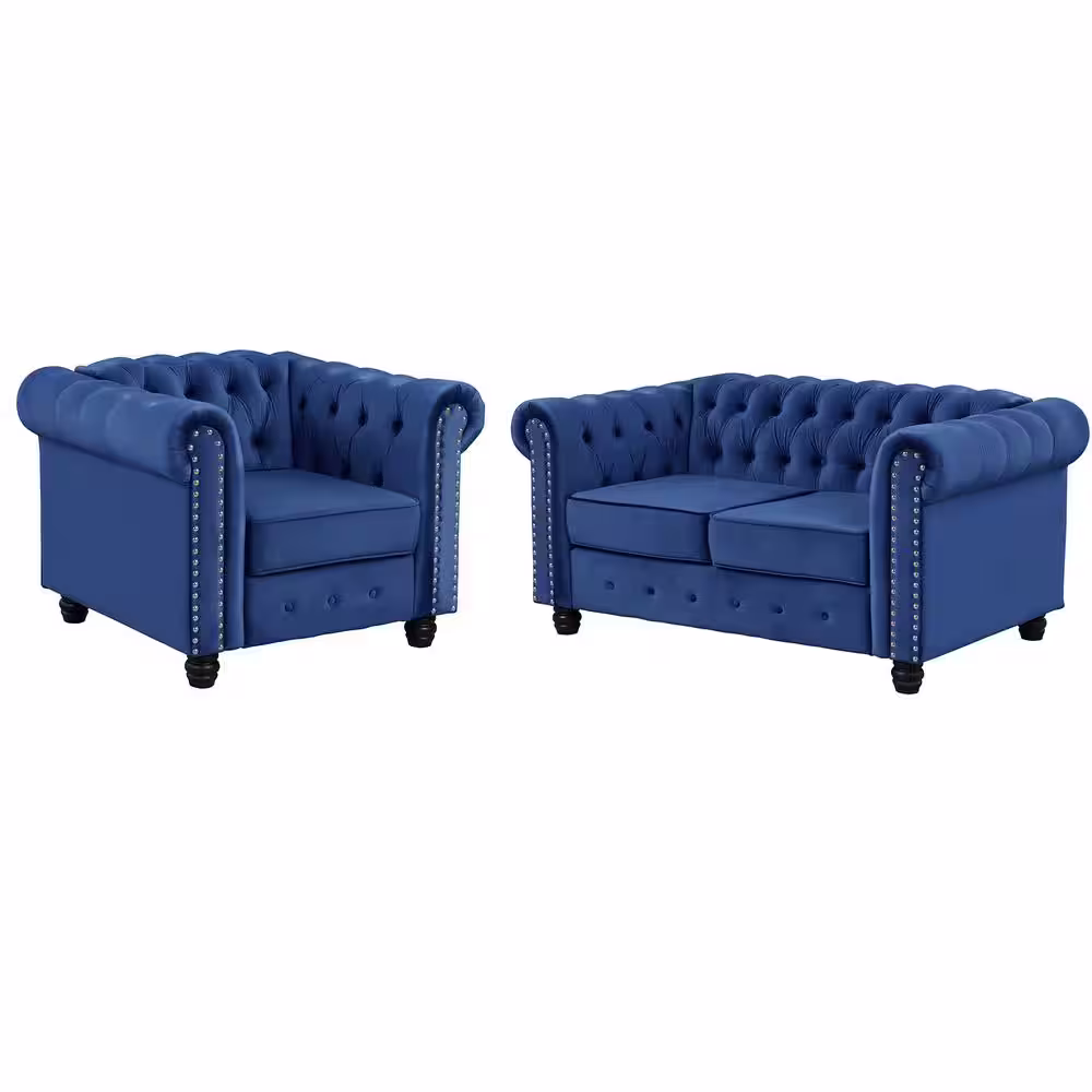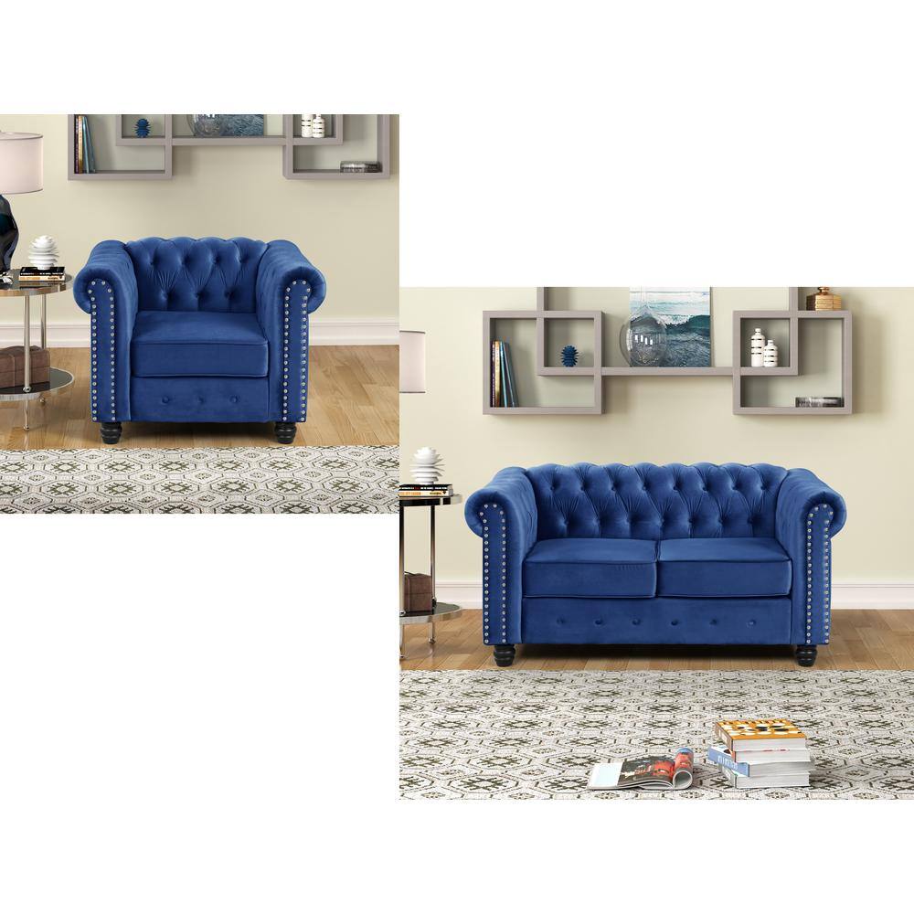 Morden Fort Velvet Couches for Living Room Sets Chair and Loveseat 2 Pieces Top in Blue