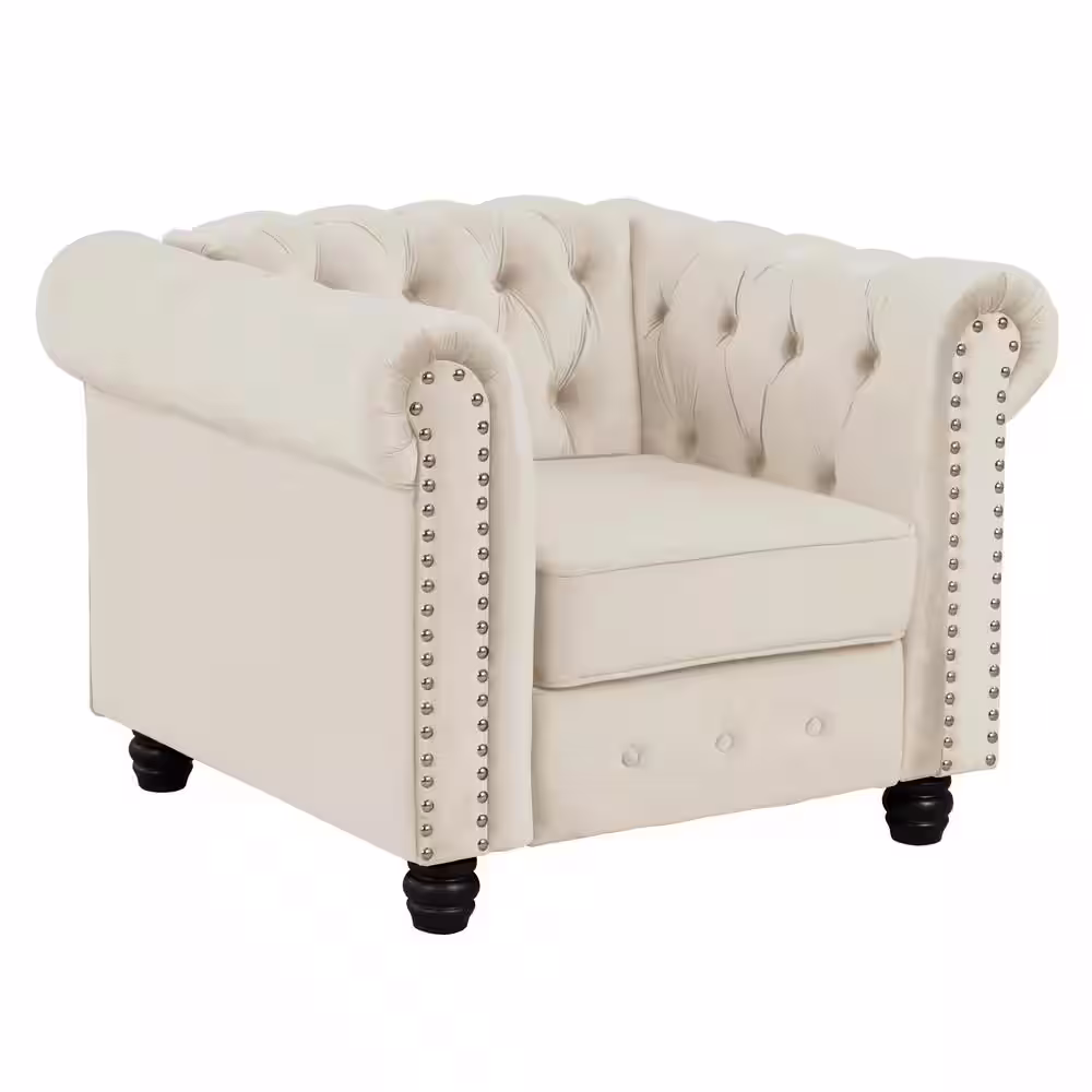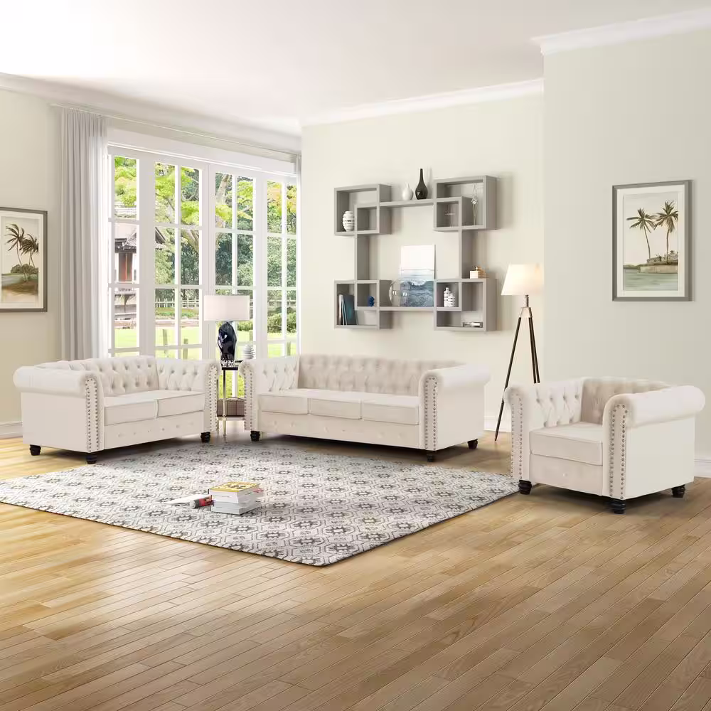 Morden Fort Velvet Couches for Living Room Sets, Chair, loveseat and Sofa 3 Pieces Top in Beige