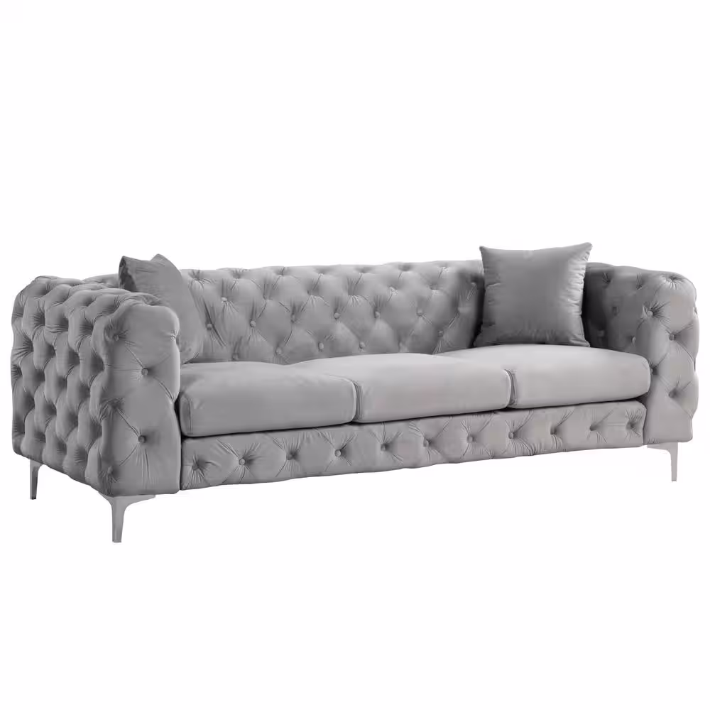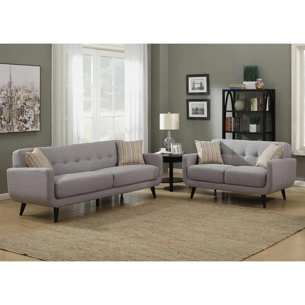 AC Pacific Crystal Upholstered Mid-Century 2-Piece Gray Living Room Set with 4-Accent Pillows
