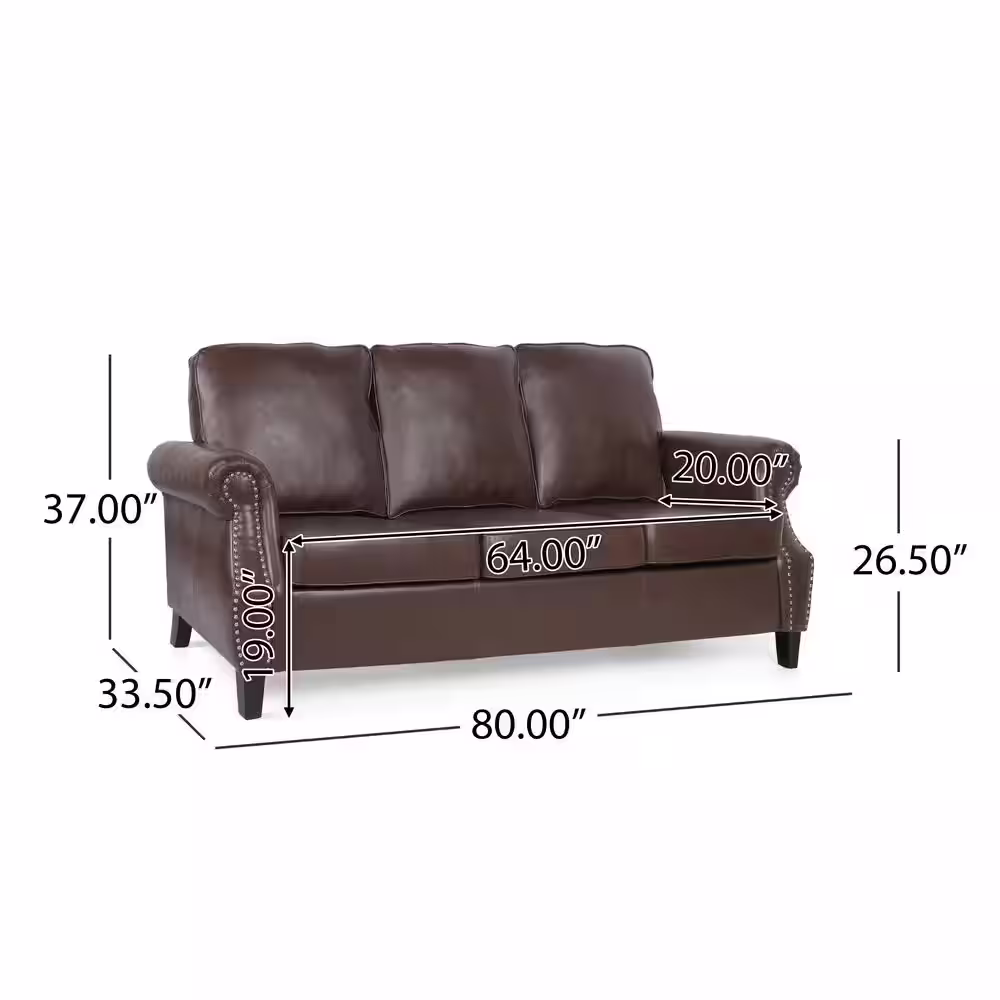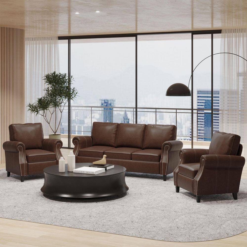 Noble House Amedou 3-Piece Faux Leather top Dark Brown Club Chair and Sofa Set