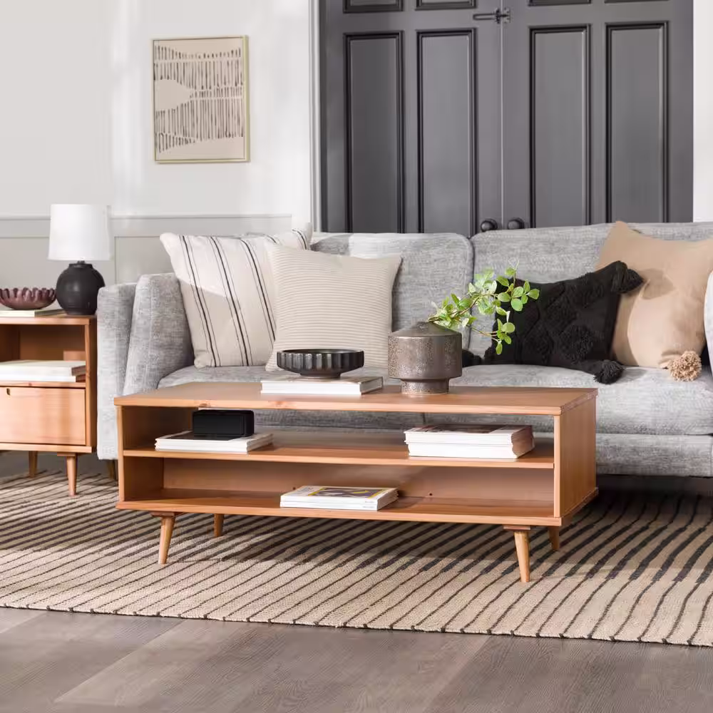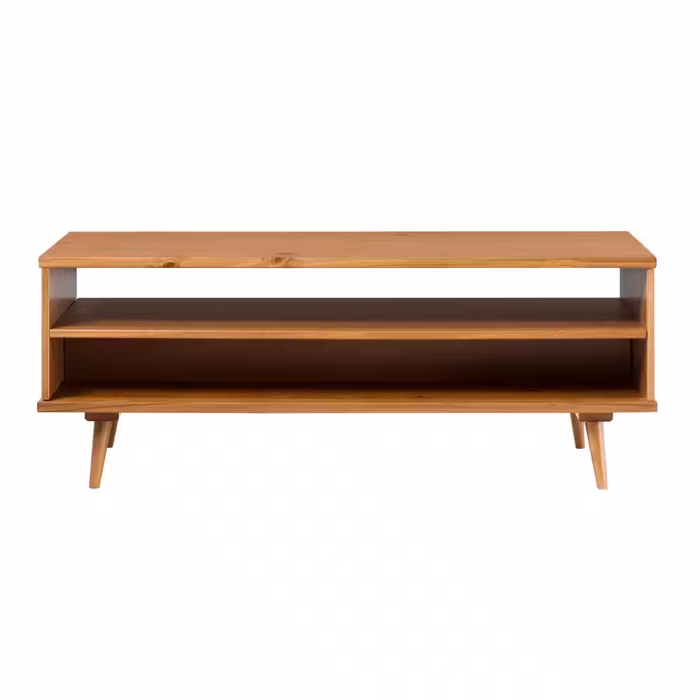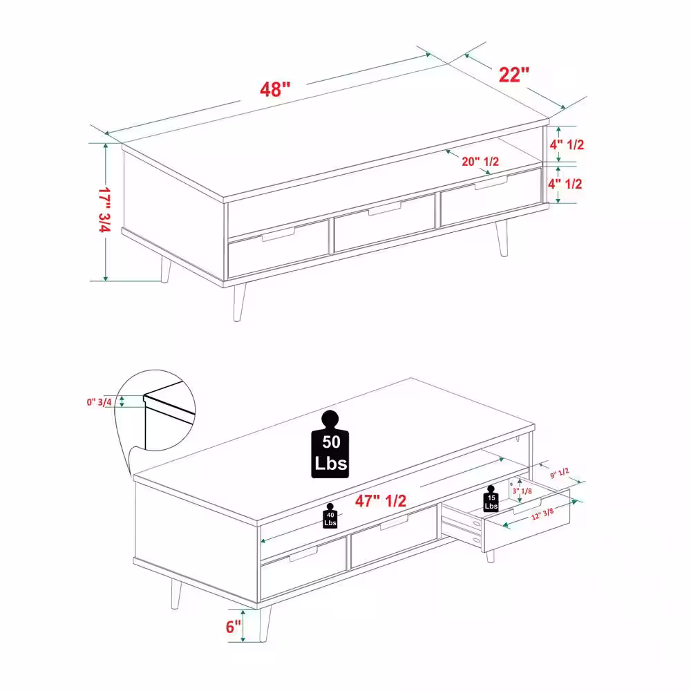 Welwick Designs 48 in. Caramel Rectangle Solid Wood Mid-Century Modern Storage Coffee Table with 3 Drawers