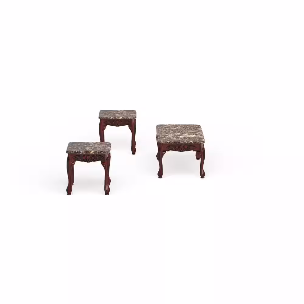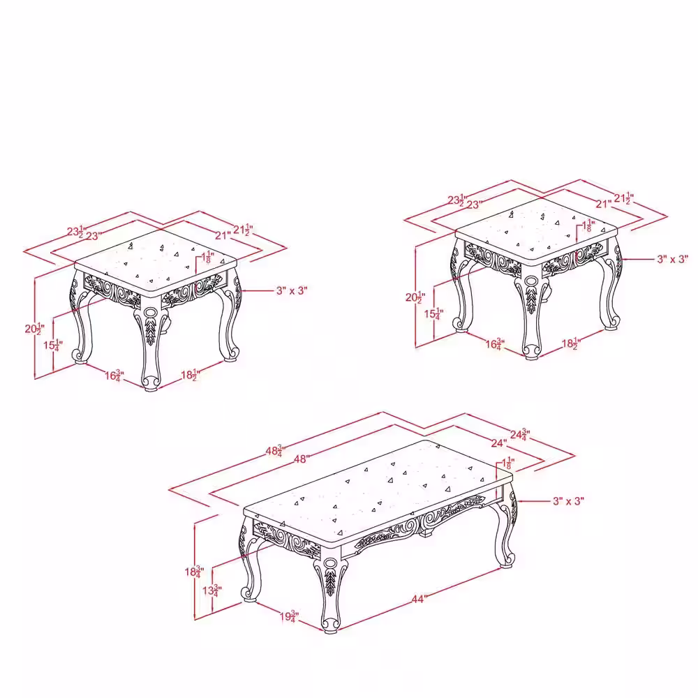 Furniture of America Semoleah 3-Piece 48 in. Dark Oak and Ivory Rectangle Faux Marble Coffee Table Set