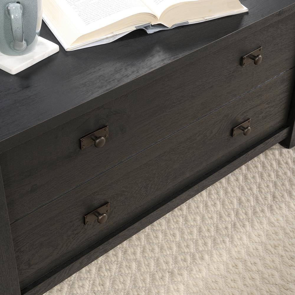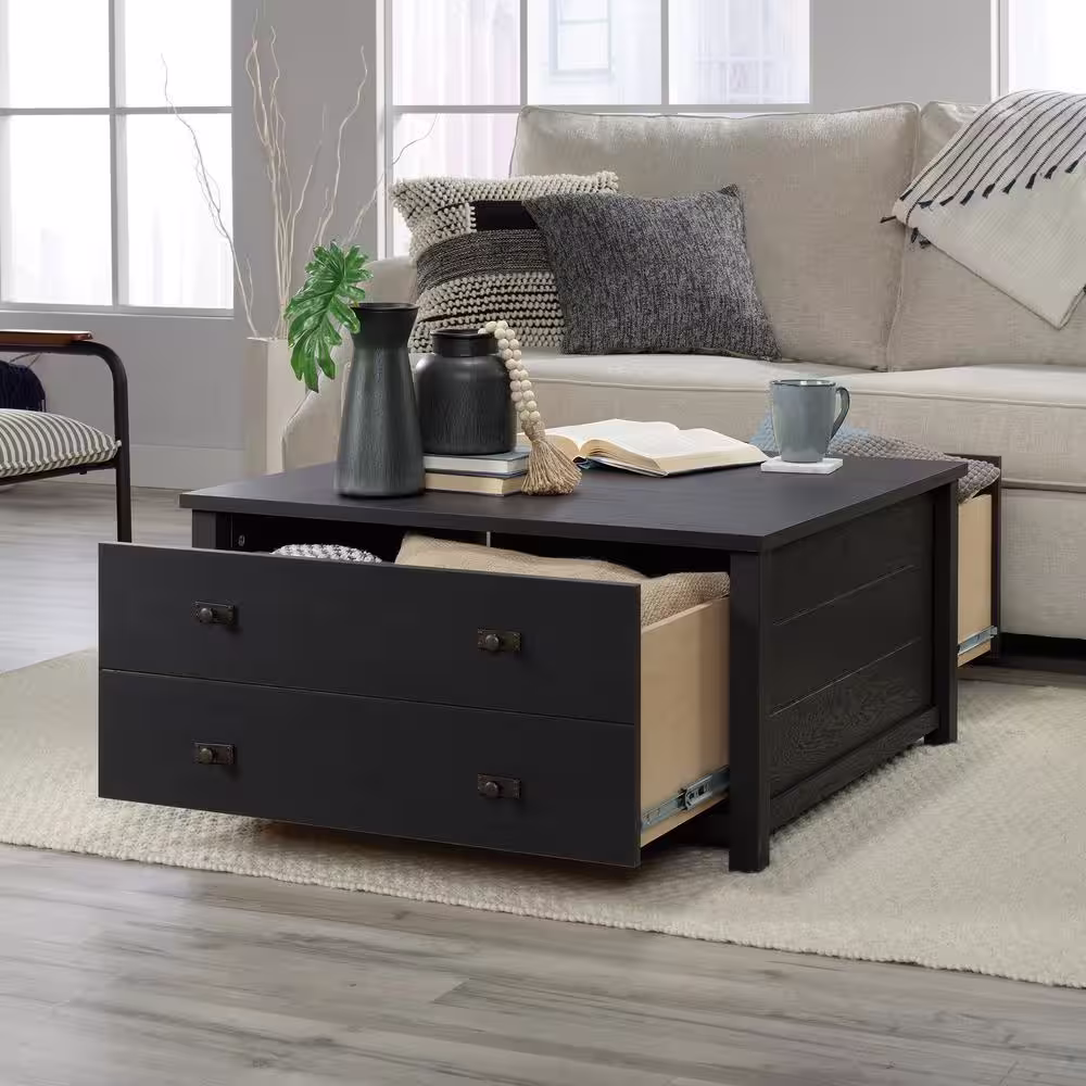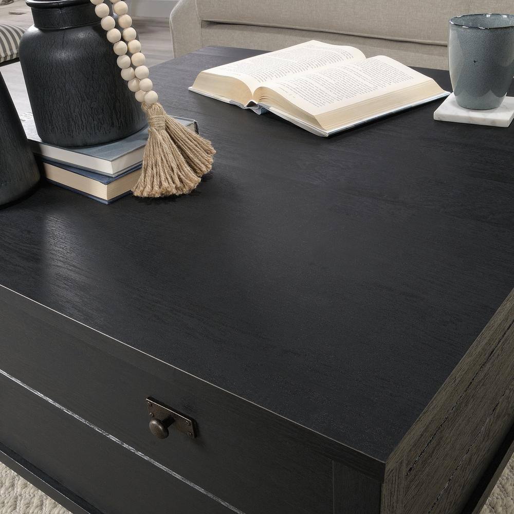 SAUDER Cottage Road 32.441 in. Raven Oak Square Engineered Wood Coffee Table with Drawers