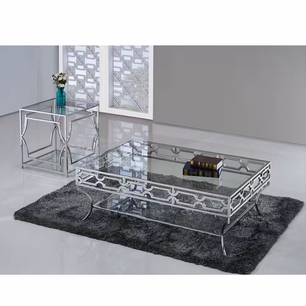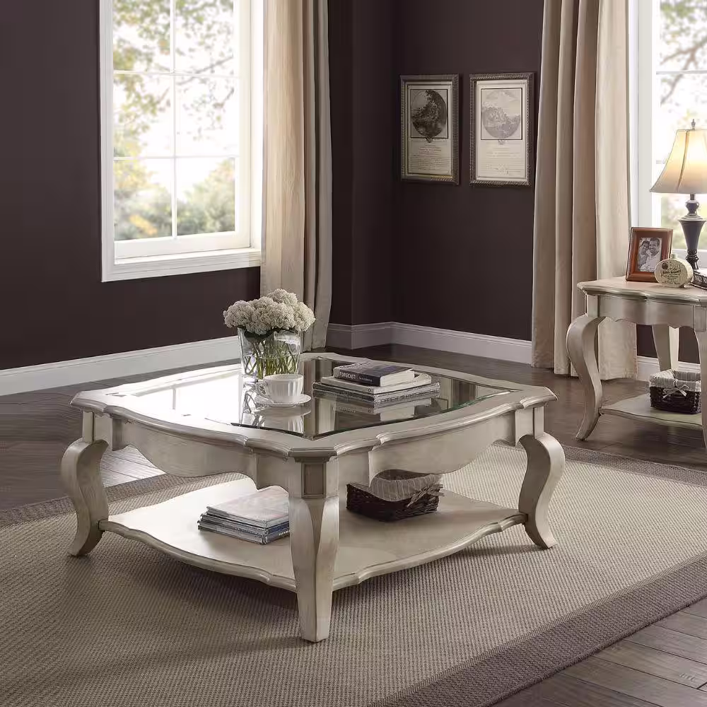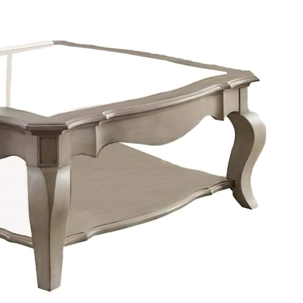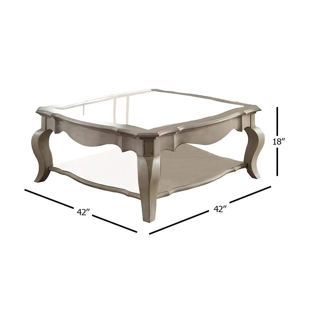 Acme Furniture Chelmsford 42 in. Antique Taupe and Clear Glass Small Square Glass Coffee Table