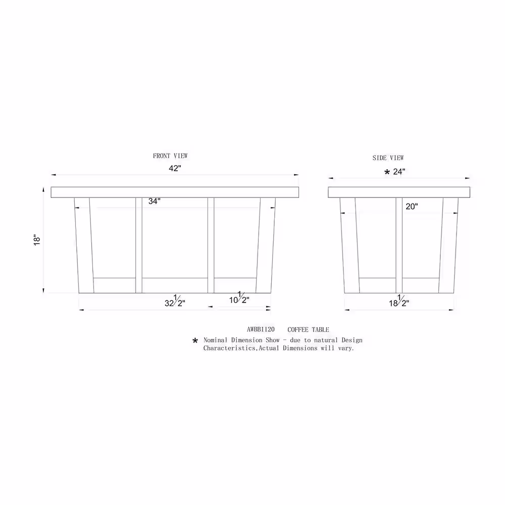 THE URBAN PORT 36 in. Brown Medium Square Wood Coffee Table with Trapezoid Base