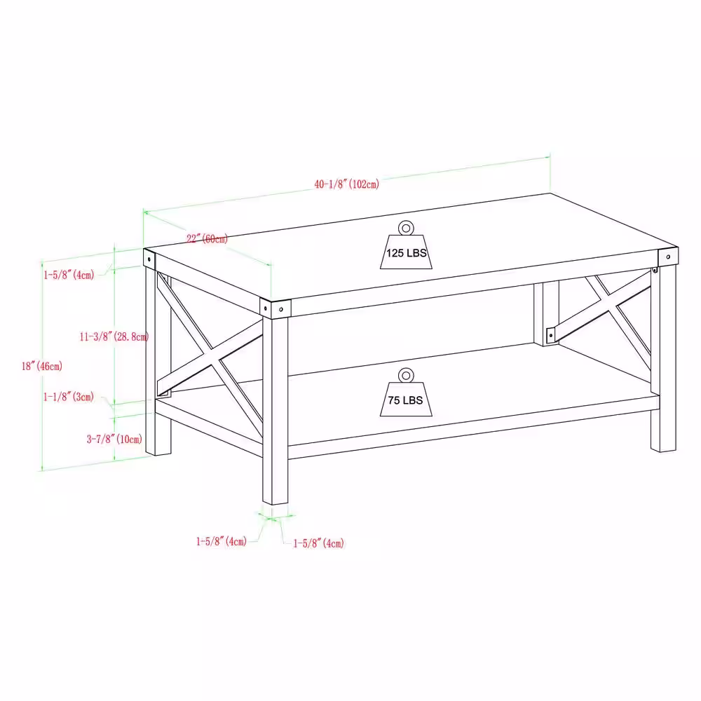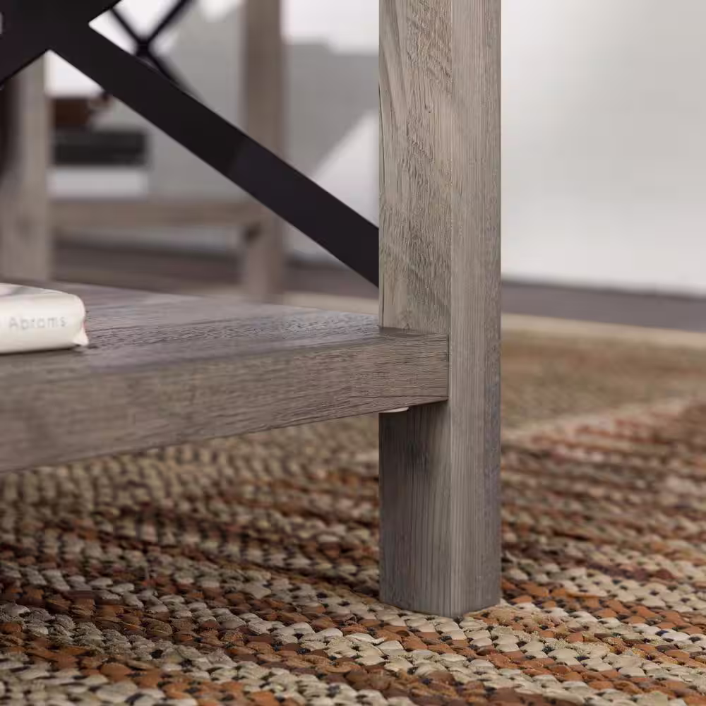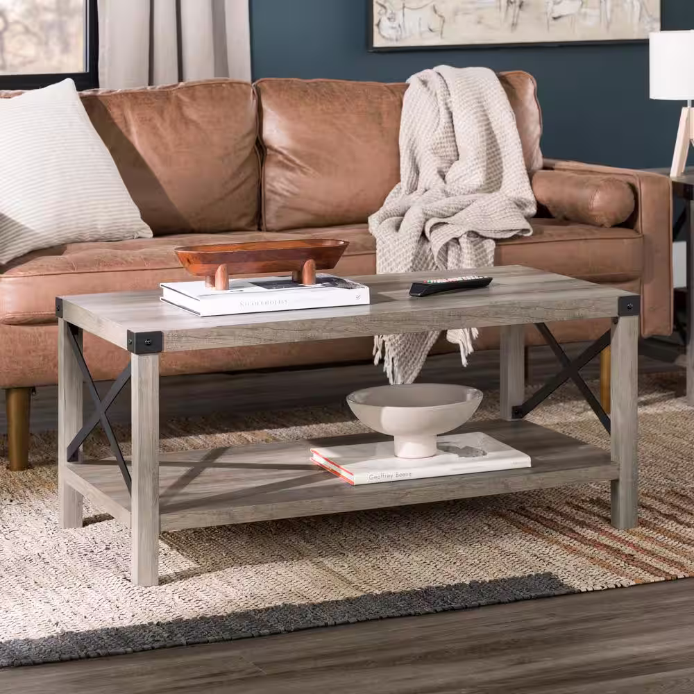 Walker Edison Furniture Company Urban Industrial 40 in. Grey Wash Medium Rectangle MDF Coffee Table with Shelf