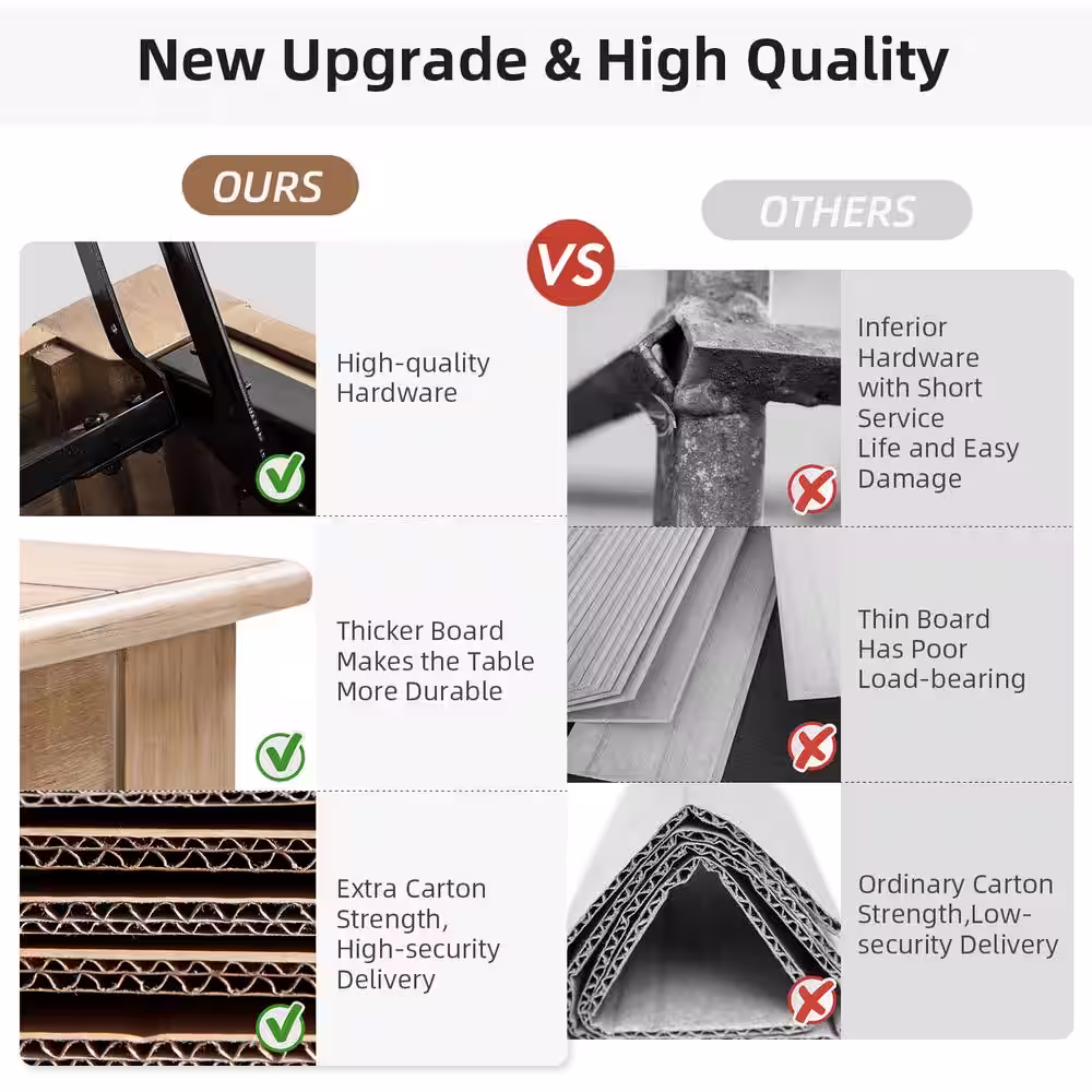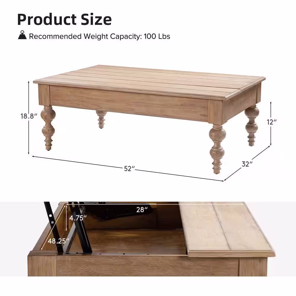 JAYDEN CREATION Emma 59.3 in. Natural Lift Top 4 Legs Coffee Table with Storage Shelf and Solid Rubber Wood Legs