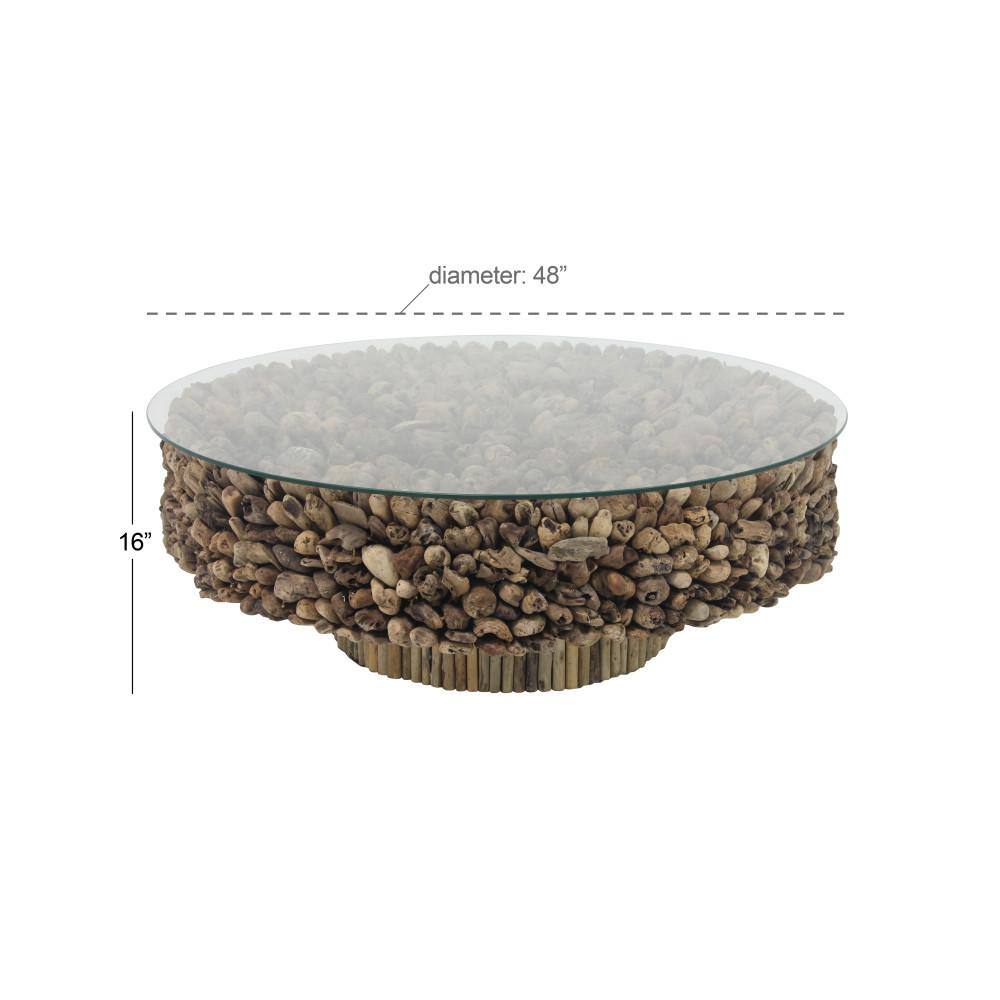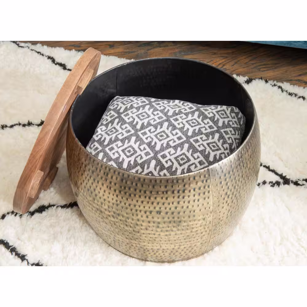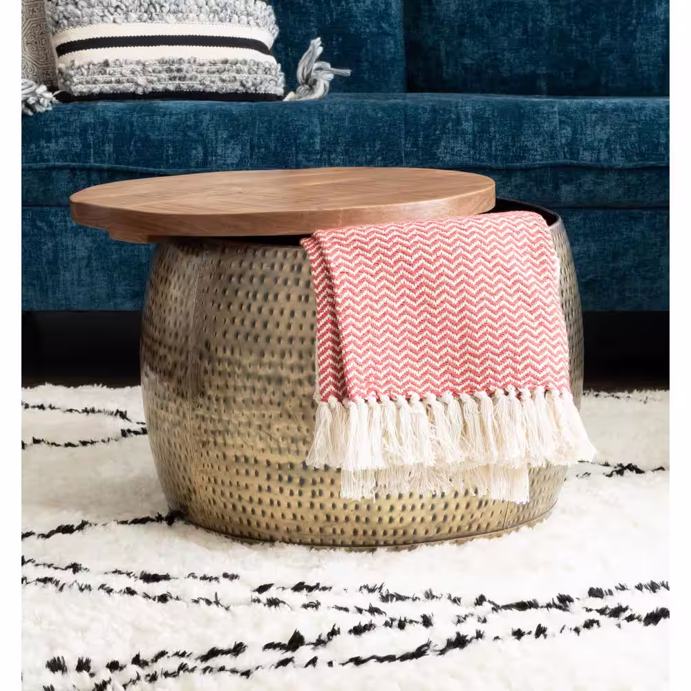 Powell Company Wagner 25 in. Brown/Gold Medium Round Wood Coffee Table with Lift Top