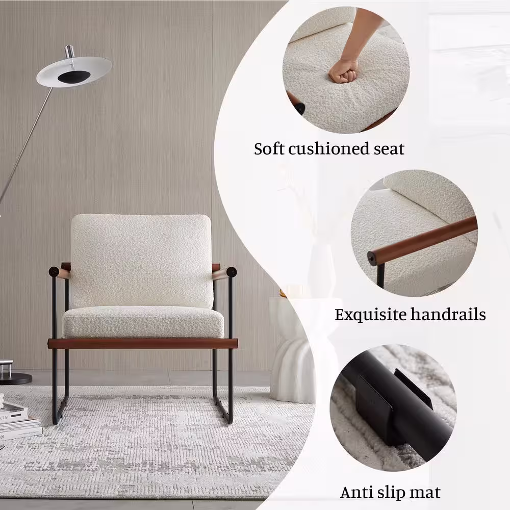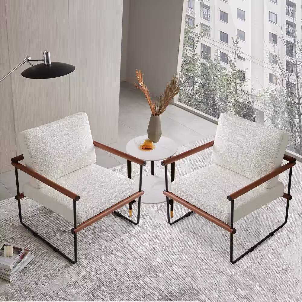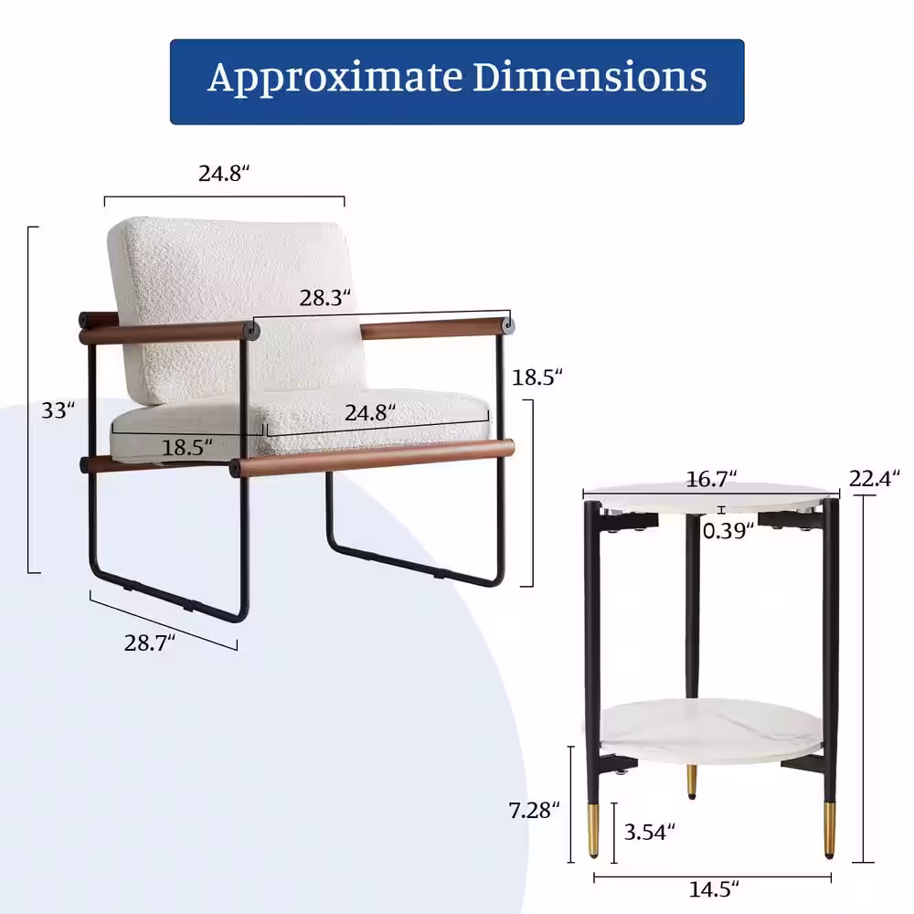GOJANE 16.7 in. White Round Slate Stone Coffee Table and Single Upholstered Armchair with 3 Pieces