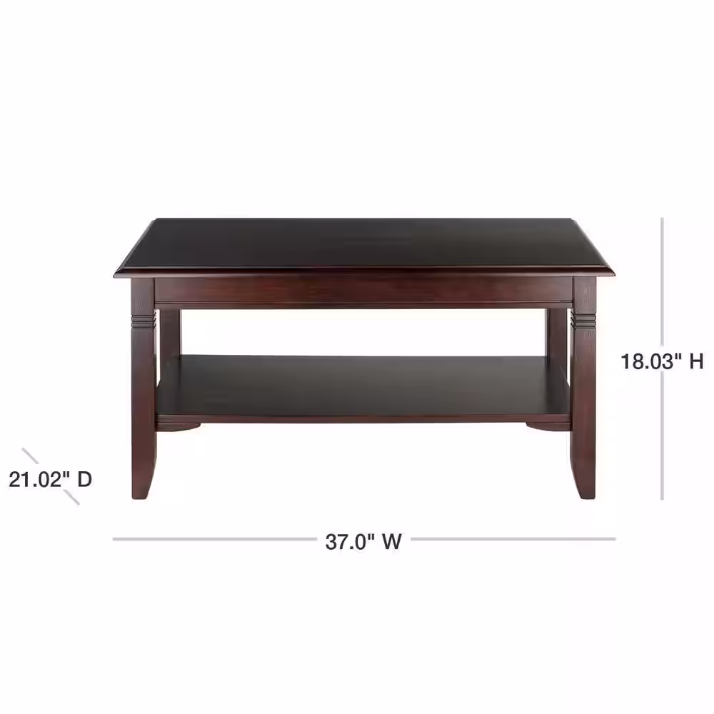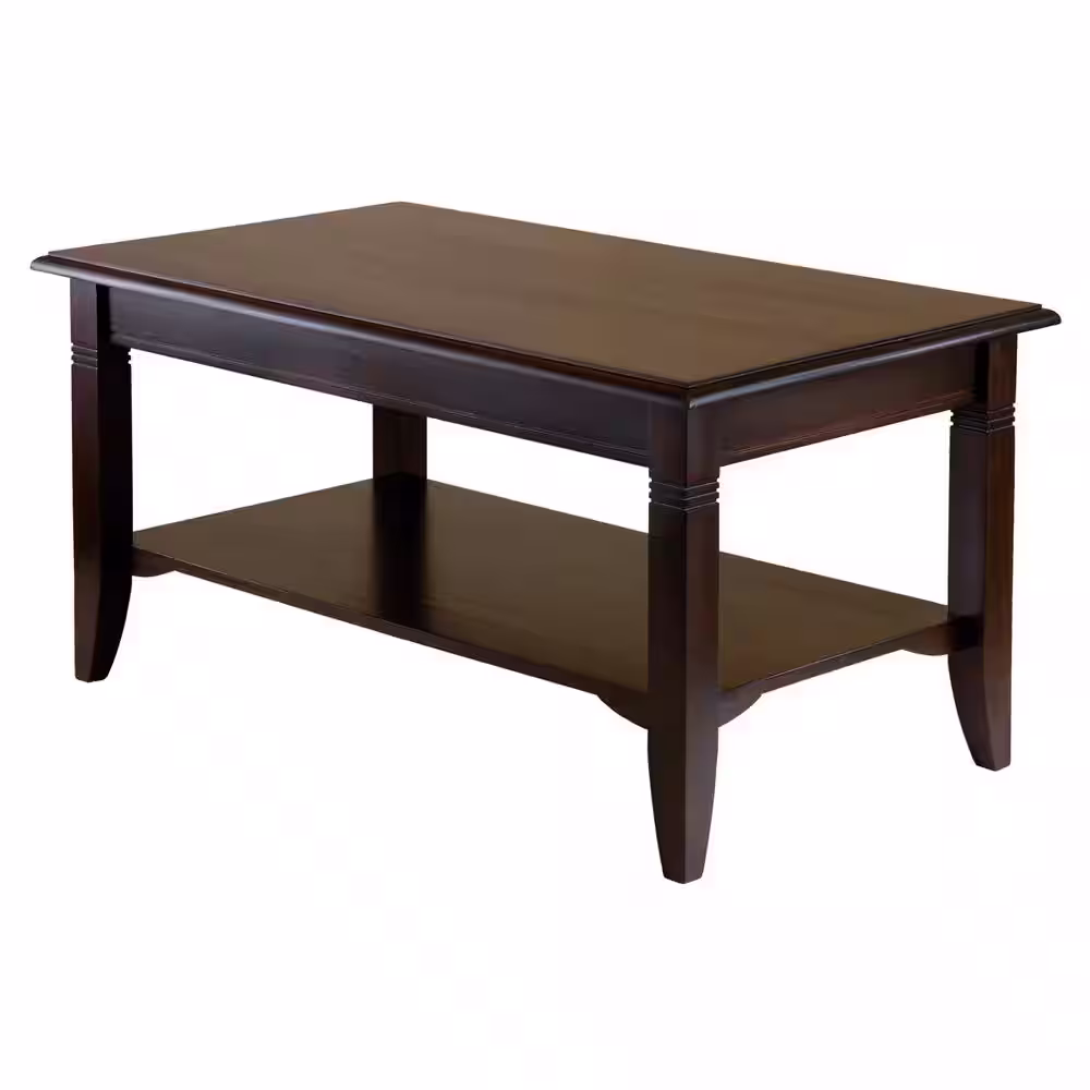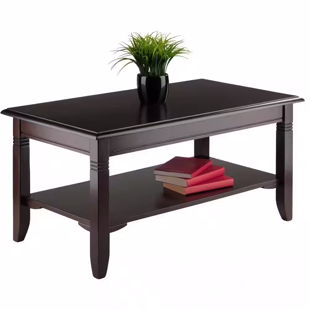WINSOME WOOD Nolan 37 in. Cappuccino Medium Rectangle Wood Coffee Table with Shelf