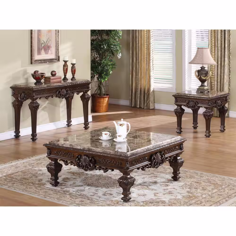 Picket House Furnishings Caleb 48 in. Espresso Large Rectangle Stone Coffee Table