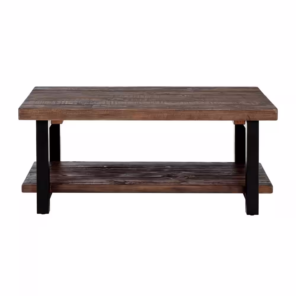 Alaterre Furniture Pomona 42 in. Rustic Natural/Black Large Rectangle Wood Coffee Table with Shelf