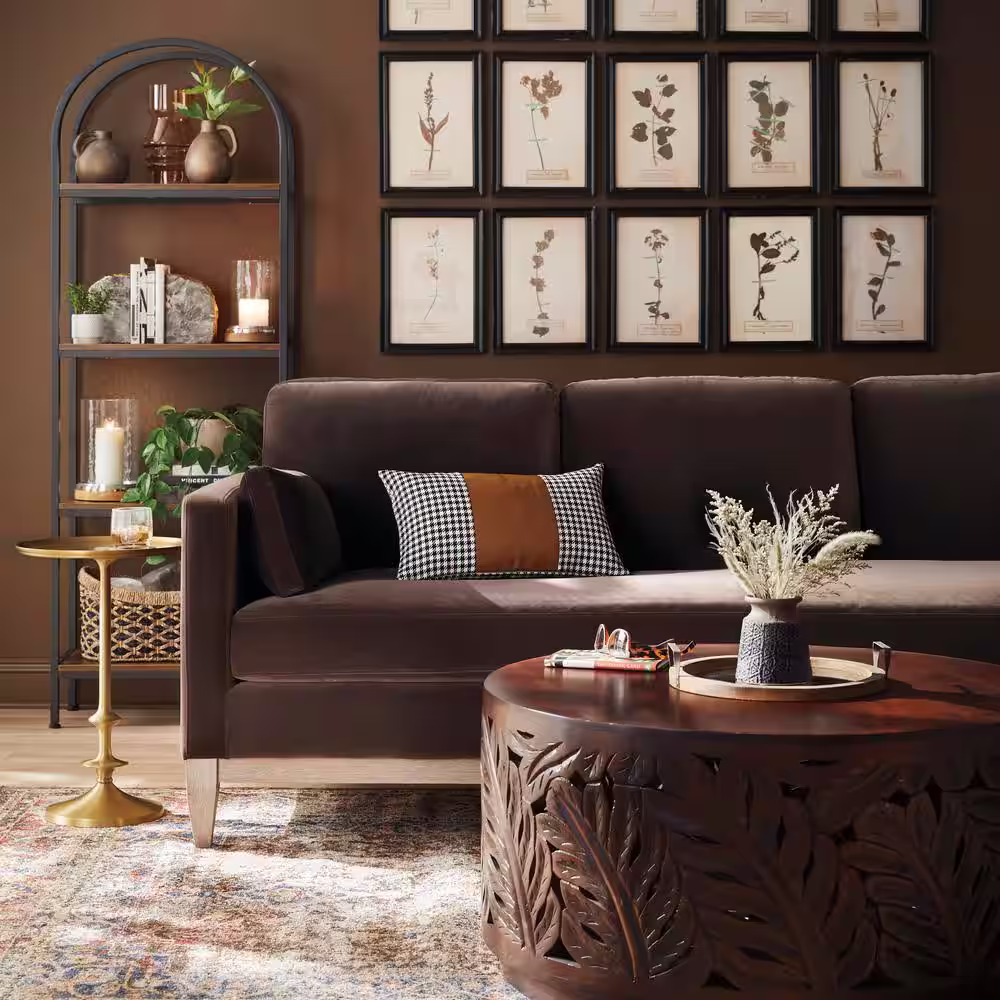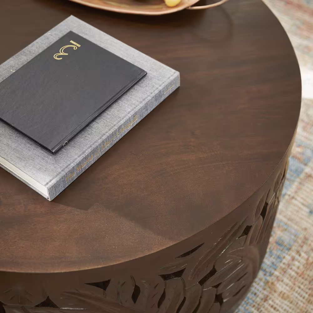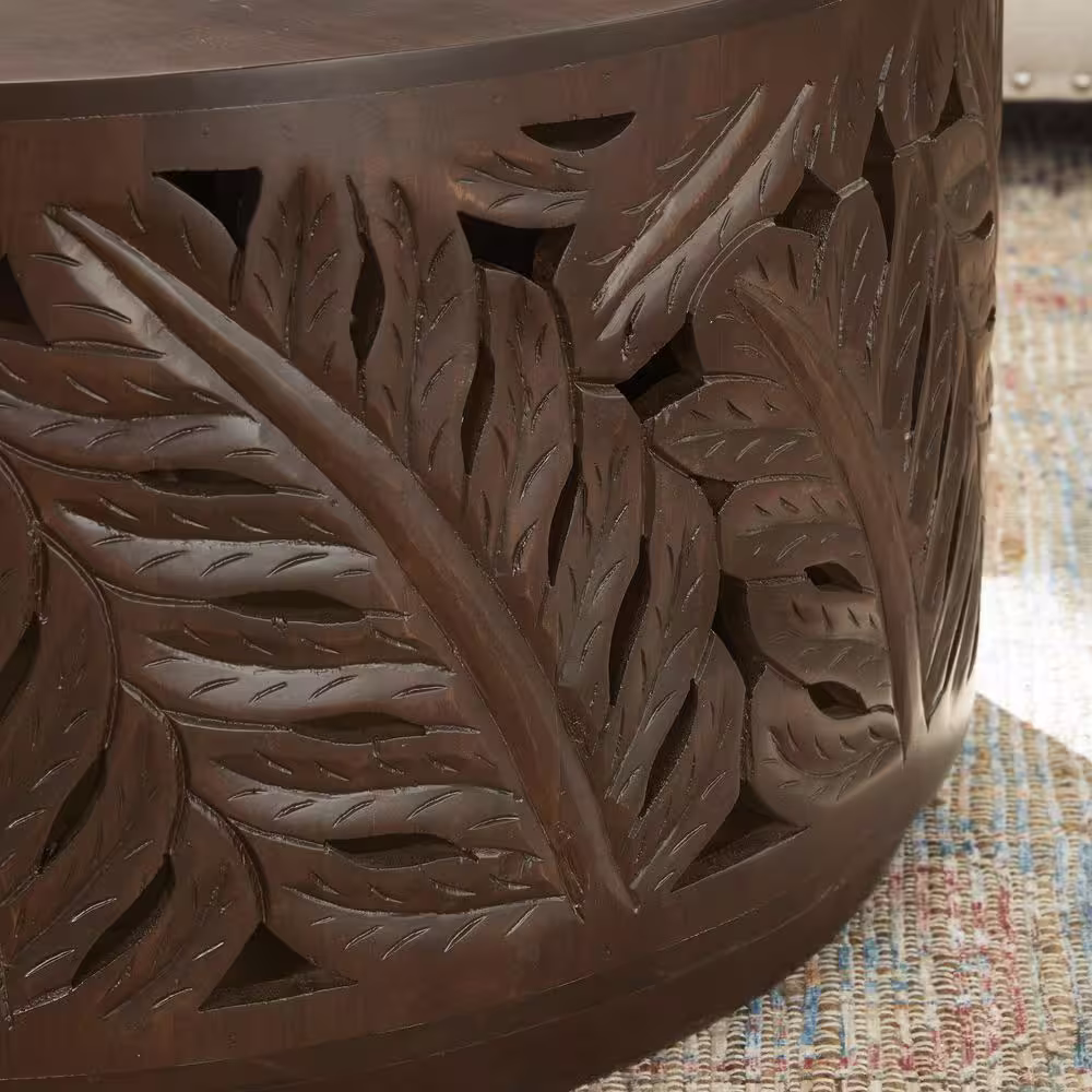 Home Decorators Collection Palmeadow 36 in. Round Carved Walnut Brown Wood Coffee Table